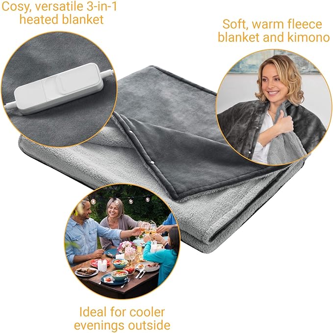 Điểm đặc biệt của chăn sưởi 3in1 HB 677 là ứng dụng linh hoạt, đa chức năng như một chiếc chăn ném, chăn poncho hay chăn sưởi cổ điển Kích thước 160x130 cm thoải mái