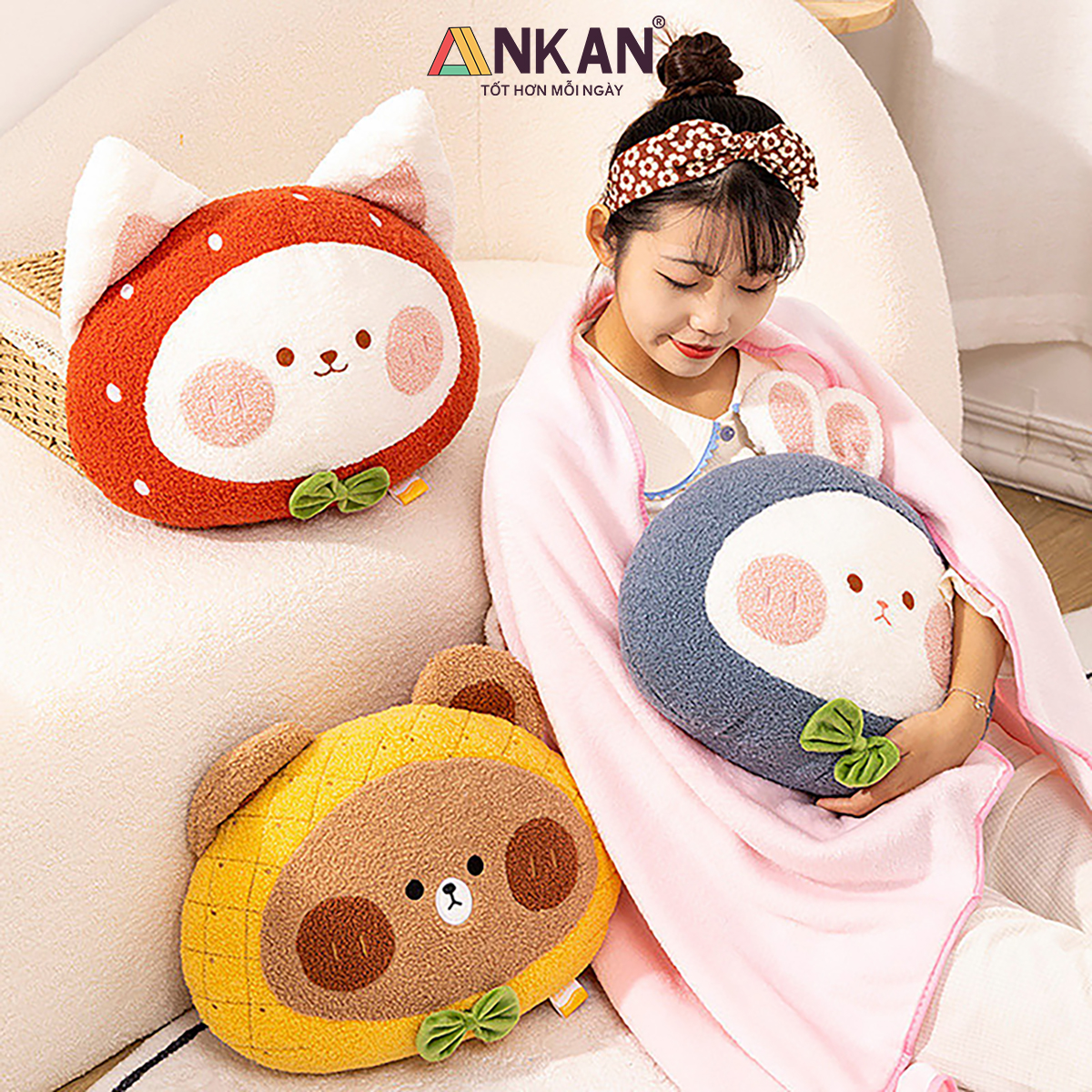Gấu Orange nằm trong danh sách 5 thiết kế mới cho dòng gối tựa lưng văn phòng kèm chăn 3 trong 1 của Thương Hiệu ANKAN. Với phong cách thiết kế độc đáo và sắc