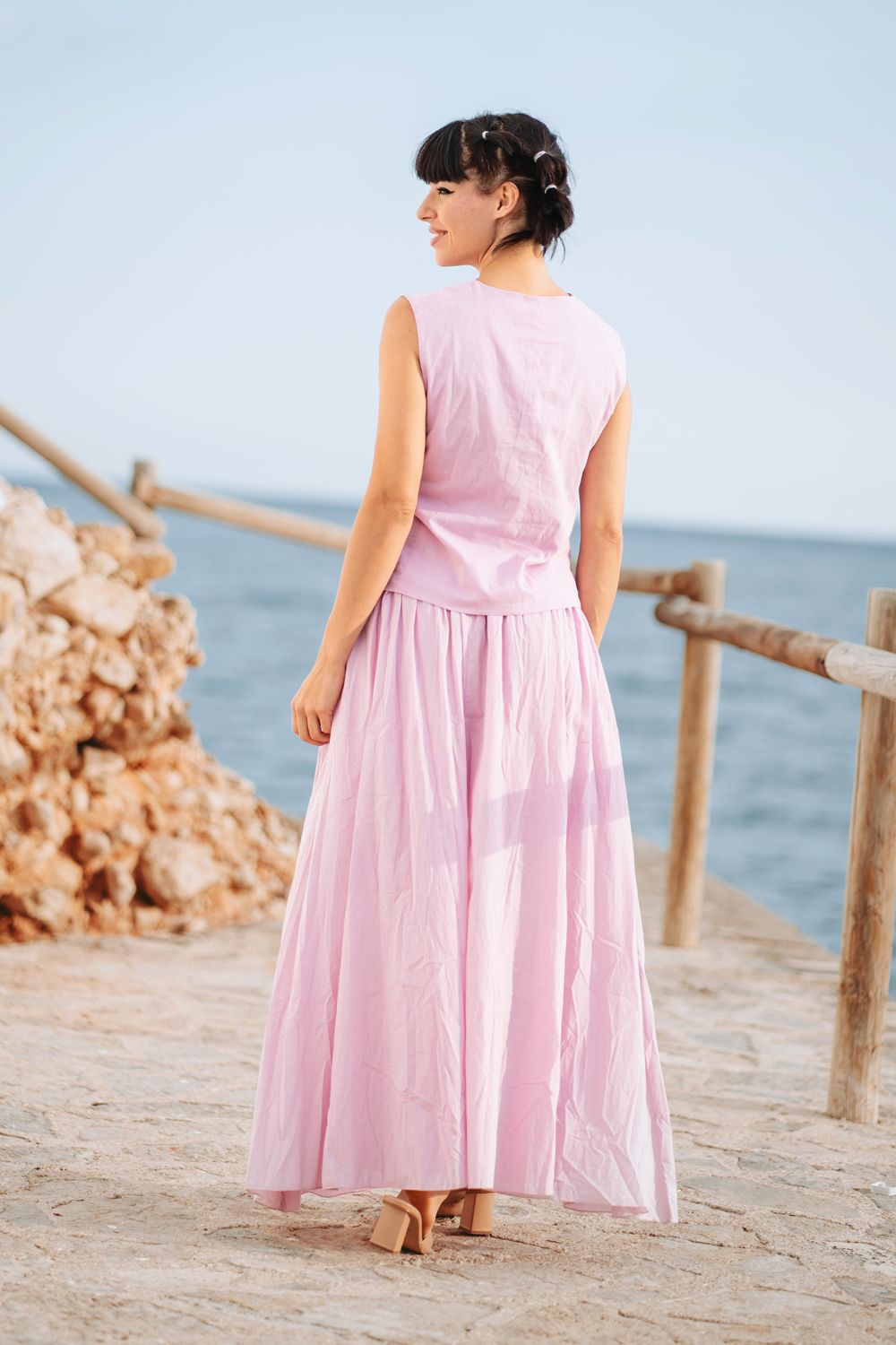 Chân Váy Cotton, chất liệu cotton mềm mại. Màu sắc nhẹ nhàng, nữ tính. Chân váy xòe rộng. Lưng thun co giãn. Dài 100cm (40x100) Phù hợp đi biển, dạo phố, công sở, hoặc dự