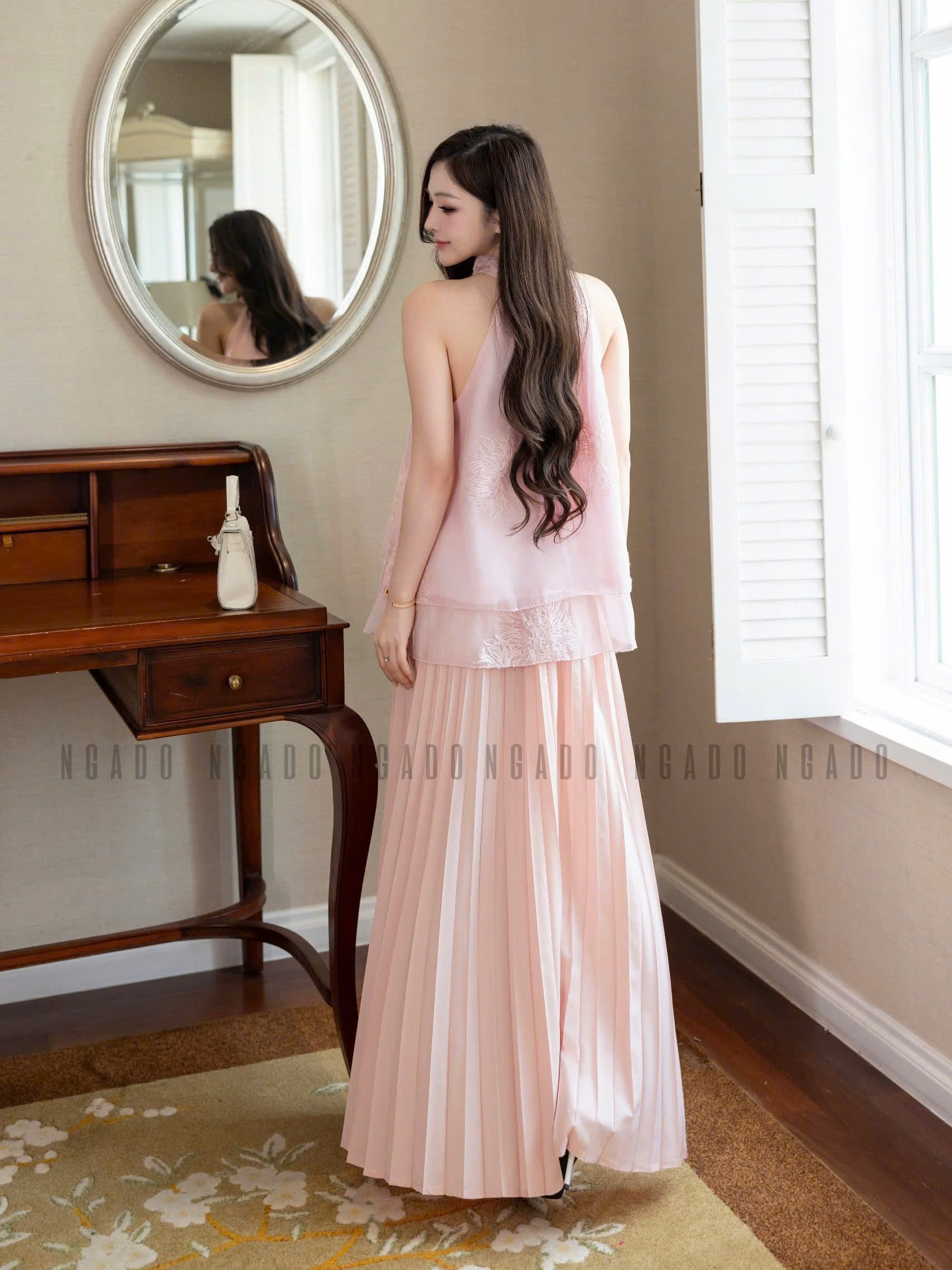 ✨Chân váy dập ly hồng NGADO , chân váy xòe dáng dài