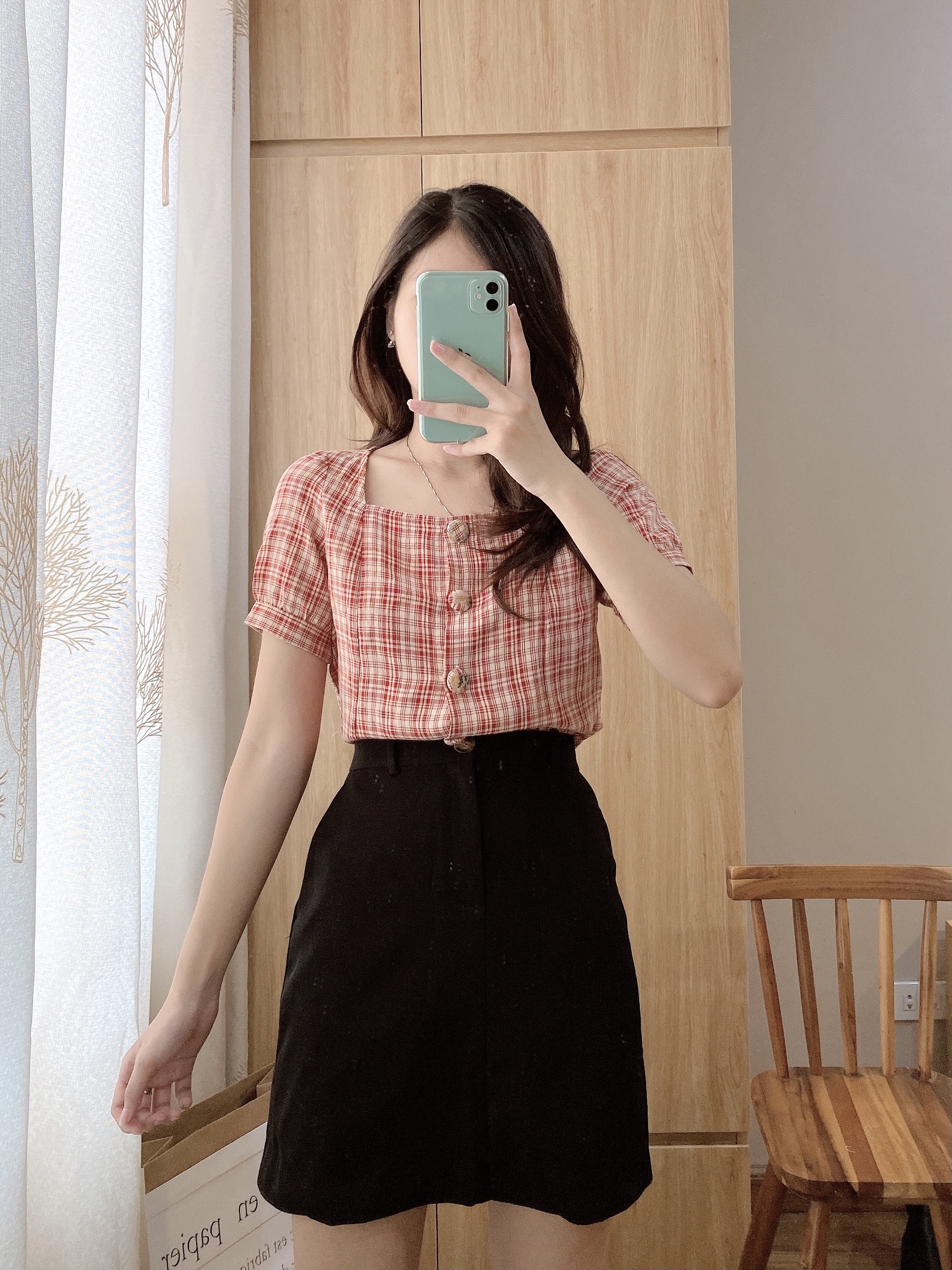 CHI TIẾT SẢN PHẨM ✿ Sản phẩm : Chân váy nữ kẻ caro dáng ngắn xòe chất vải đầy dặn Otis Miều Est.2013 ✿ Chất liệu : Kaki ✿ Màu sắc : ĐEN CARO ✿