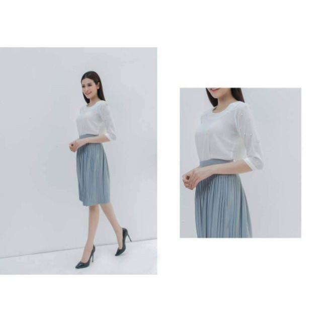 CHÂN VÁY XẾP LI CẠP VẢI CÔNG SỞ DÀI QUA GỐI_LOAN BOUTIQUE 0981112038
