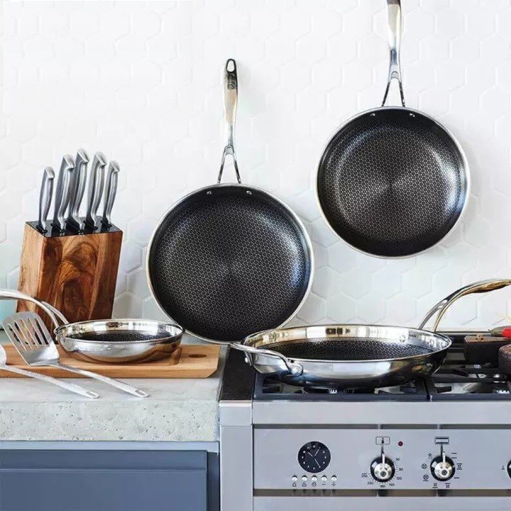 • Chảo tổ ong chống dính dạng tay cầm đáy liền 3 lớp Inox Sus304 vân chống trượt • Công nghệ Honey Comb - dạng tổ ong chống dính và chống quá nhiệt an toàn