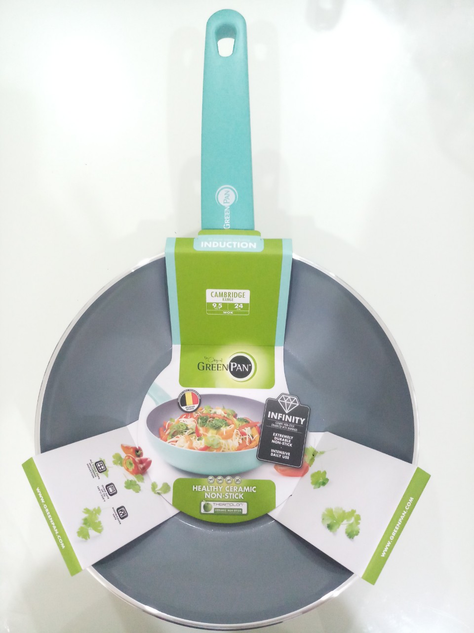 Là một chiếc chảo lòng cực rộng; dùng được đa năng như chiên, xào, nướng. Rất thích hợp làm BBQ. Chảo có hoạ tiết Blakcube được phủ lớp chống dính gốm màu ngọc xanh của