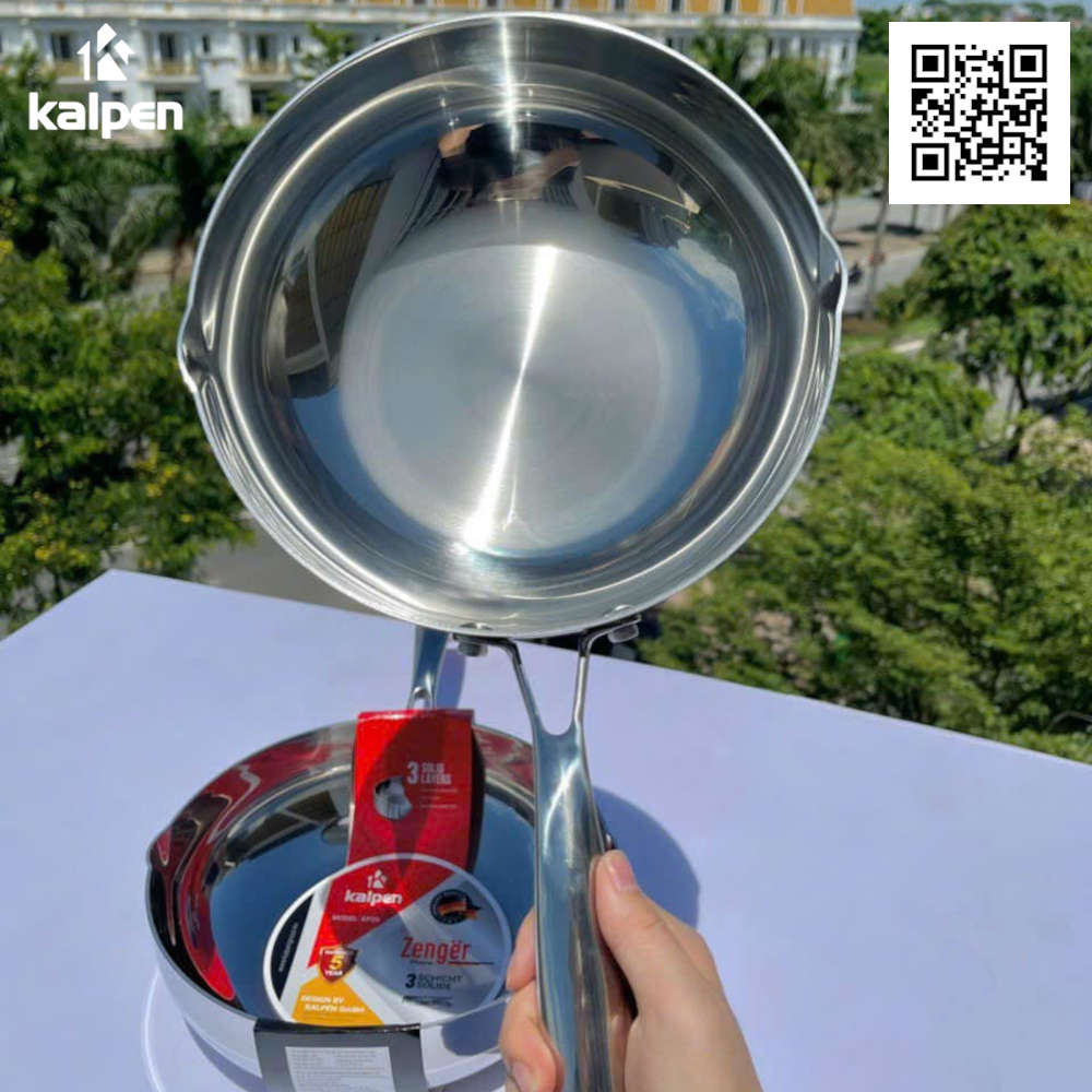 Chảo Inox 3 lớp đúc liền khối miệng rót Kalpen Zenger 26cm, bảo hành 5 năm