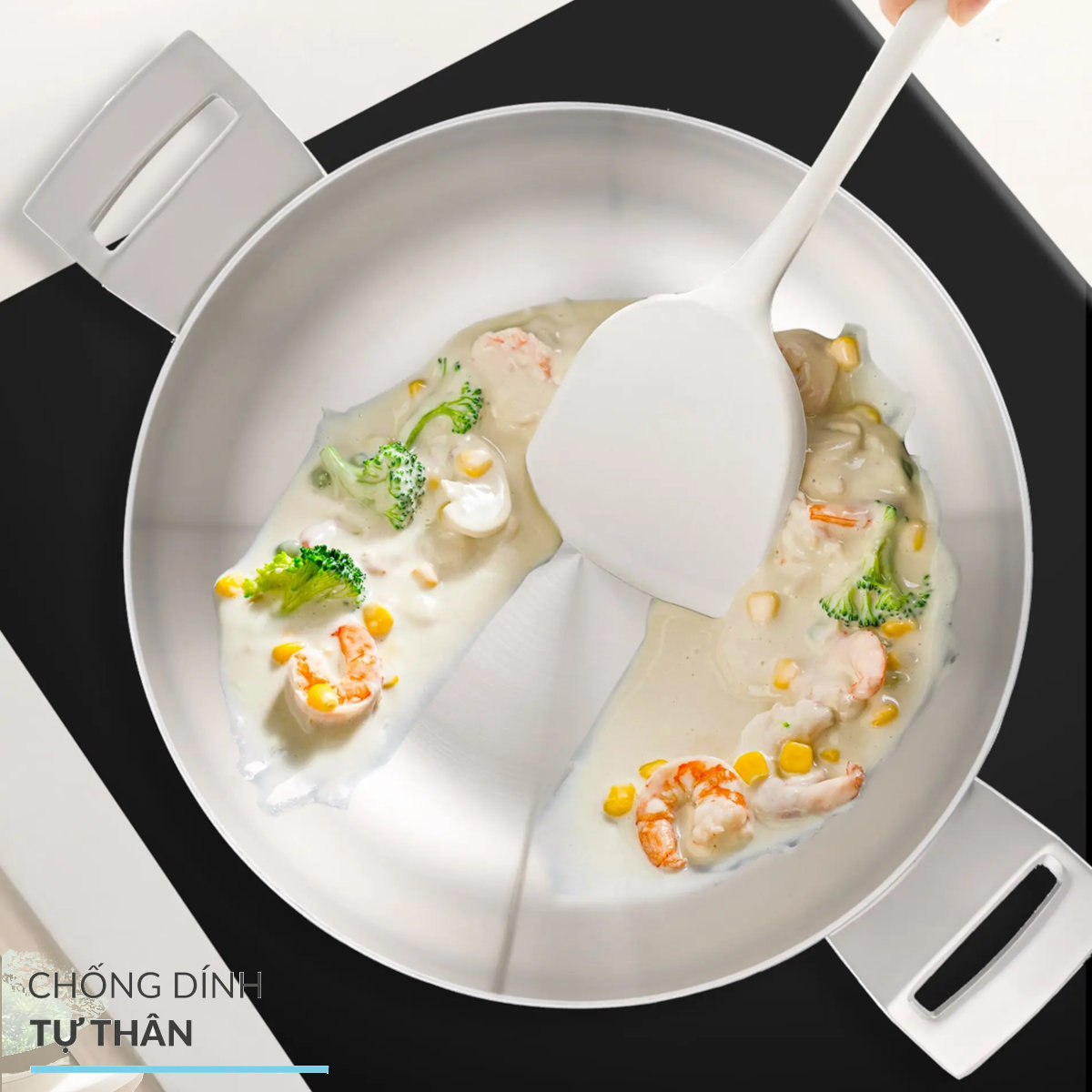 - Thiết kế nguyên khối hiện đại và bền bỉ: Thân chảo đúc liền, không mối nối giúp tăng tuổi thọ sản phẩm, chống nứt vỡ và dễ vệ sinh sau khi sử dụng.