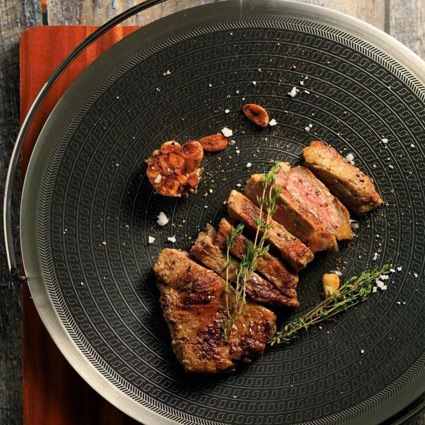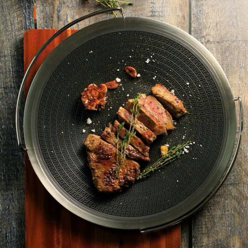 Thiết kế chuyên dụng phù hợp cho các món nướng, dùng trực tiếp với bếp Từ, bếp điện, bếp gas, bếp hồng ngoại.Lòng Chảo có các đường gân nổi song song giúp thực phẩm không