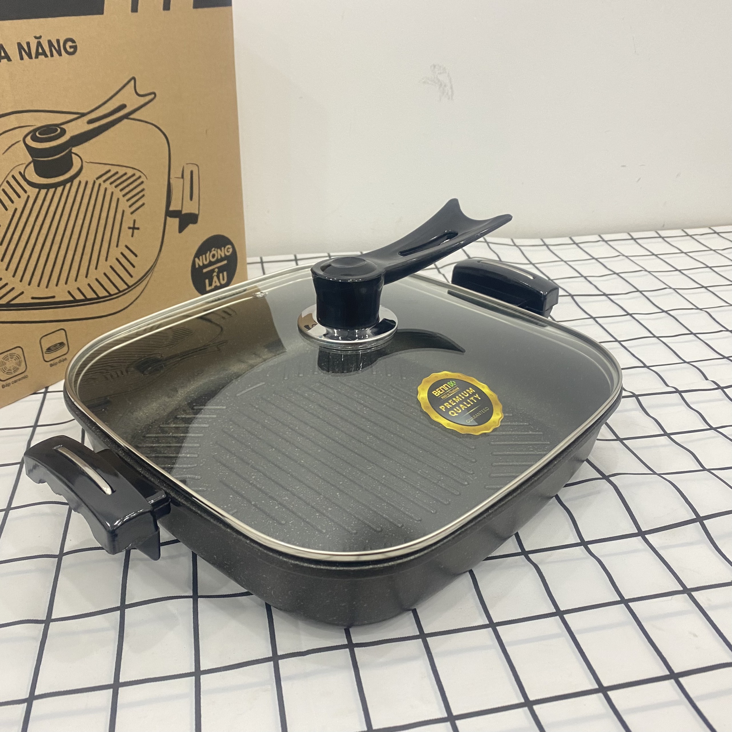 Mua tại TiktokChảo Nướng Lẩu Đa Năng Vân Đá Cao Cấp Terra Bennix 30cm- Hàng Chính Hãng 1. ĐẶC ĐIỂM NỔI BẬT: - Thiết kế nhiều rãnh trên bề mặt, giúp hạn chế lượng dầu, mỡ khi