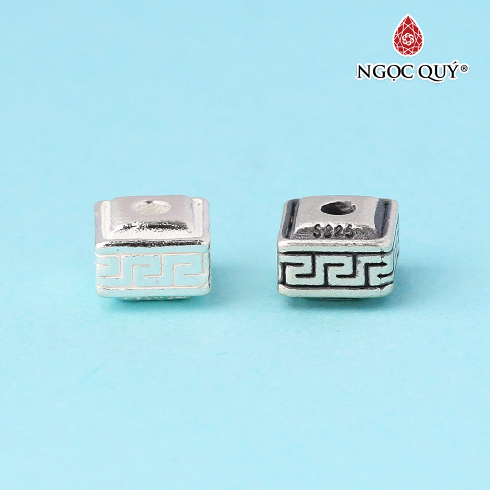 ✨Charm bạc xỏ ngang hình lập phương họa tiết chữ thập - Ngọc Quý Gemstones