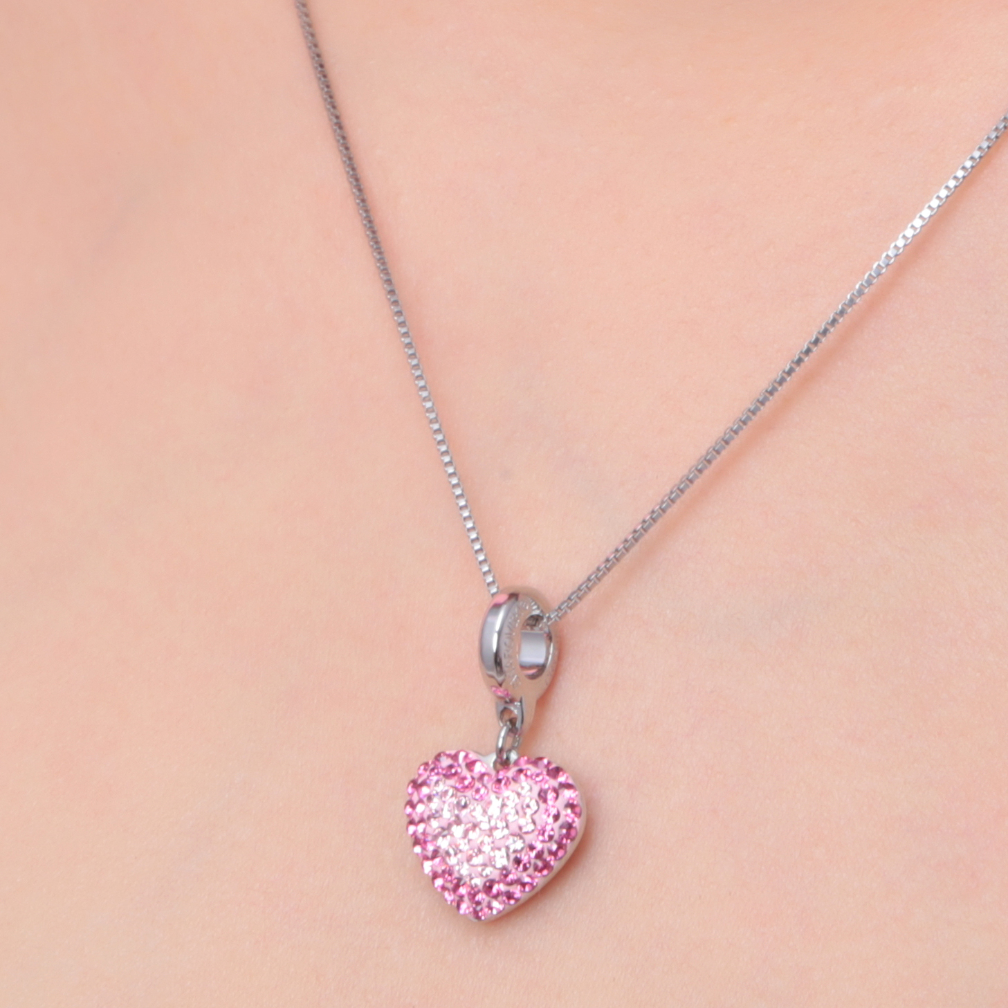 Charm Pha Lê Swarovski Trái Tim Màu Hồng Đính Đá Lấp Lánh (Không Kèm Dây + Không Kèm Vòng Tay)