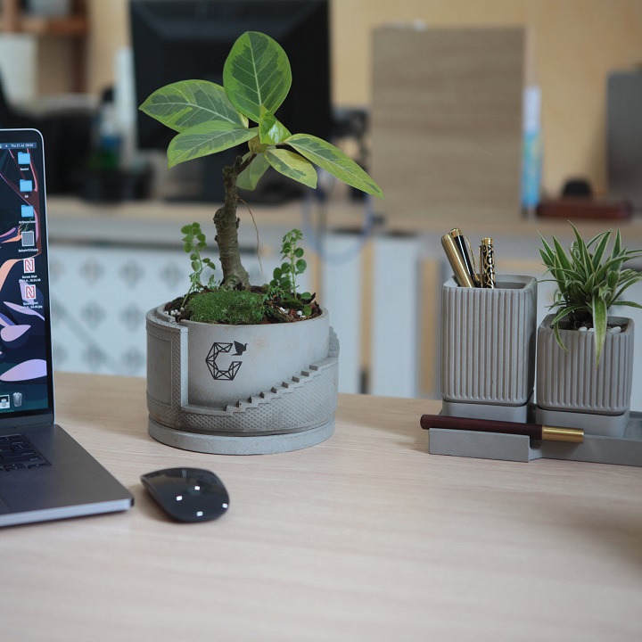 Nếu bạn đang tìm chậu cây xi măng để bàn sang trọng cho nhu cầu cá nhân, hoặc làm quà tặng cho một ai đó. Hãy tham khảo mẩu chậu cây bậc thang hoa tiết này nhé.