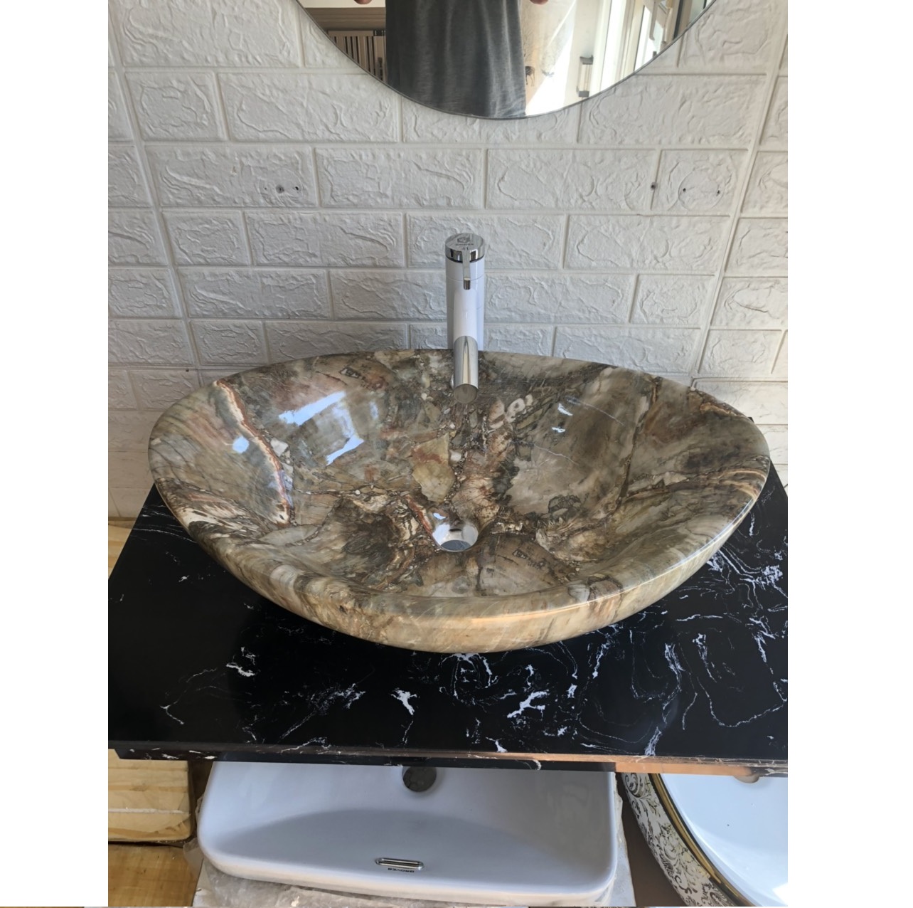 CHẬU ELIP VÂN ĐÁ VÀNG NÂU GRVL 0680 là mẫu thiết bị vệ sinh GROVES có kiểu dáng đẹp với thiết kế hình elip thu hút, men sứ chống bám bẩn, lòng chậu sâu và