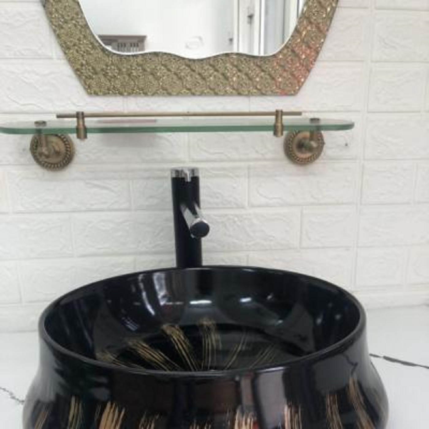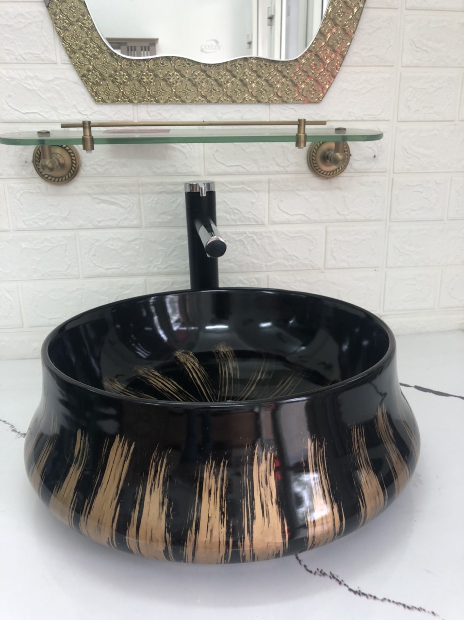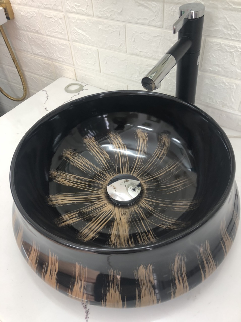✨Chậu LAVABO Tròn Đen Ánh Vàng GRVL04