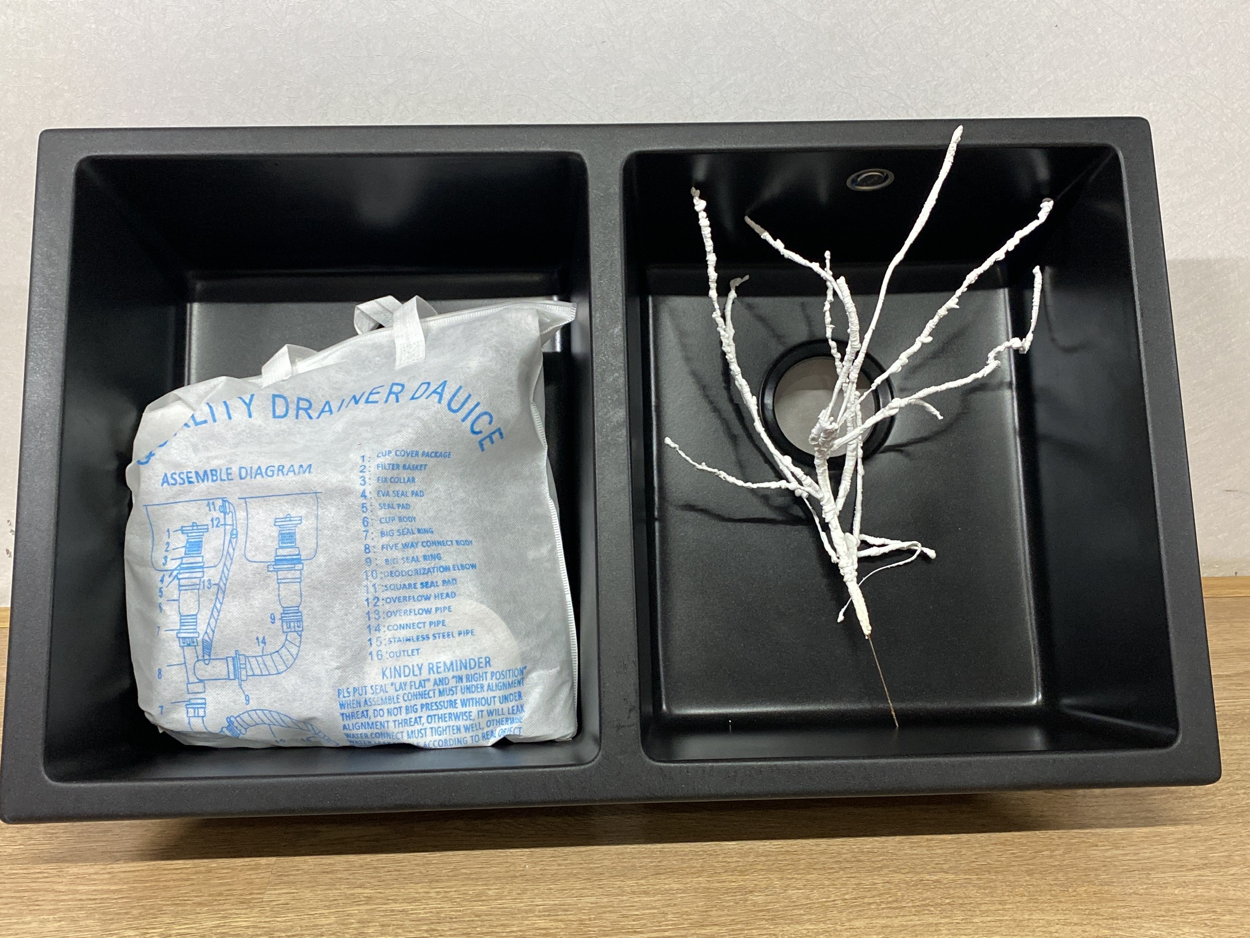 Chất liệu: Đá GRANITE Màu sắc: Trắng Độ sâu bồn: 240mm Kích thước: 838D x 557R mm Đóng gói: 1 bộ tiêu chuẩn túi PE, Foam (kèm Siphon)