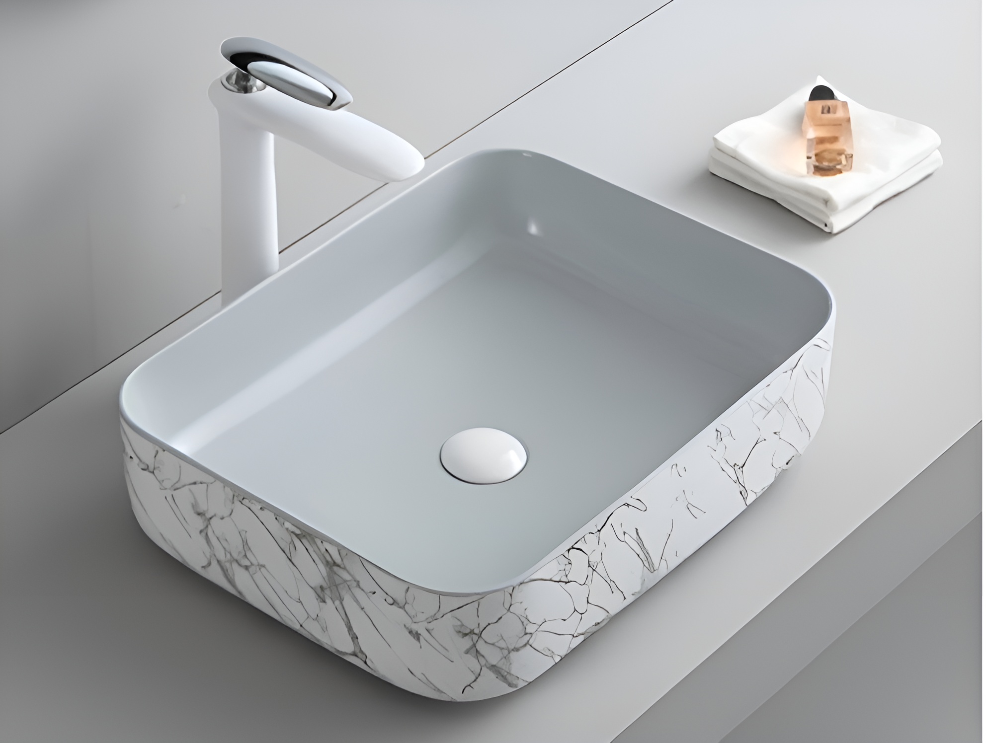 Sản phẩm: Chậu rửa lavabo đặt bàn Rangos RG-DE8006 Thiết kế chậu đặt bàn vân đá, hình oval sang trọng Công nghệ FFC hiện đại, vật liệu từ cao lanh chất lượng cao Nhiệt độ