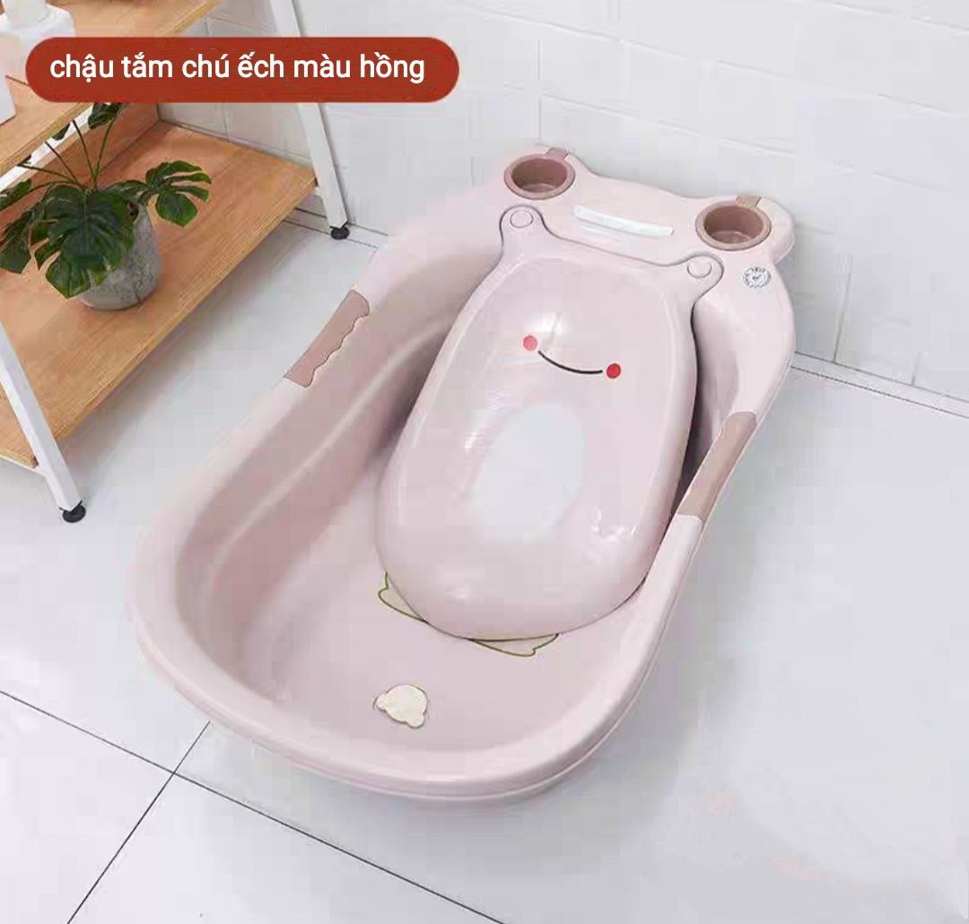 Chậu Tắm Ếch cao cấp cho bé có van thoát nước kt 85 50 32cm