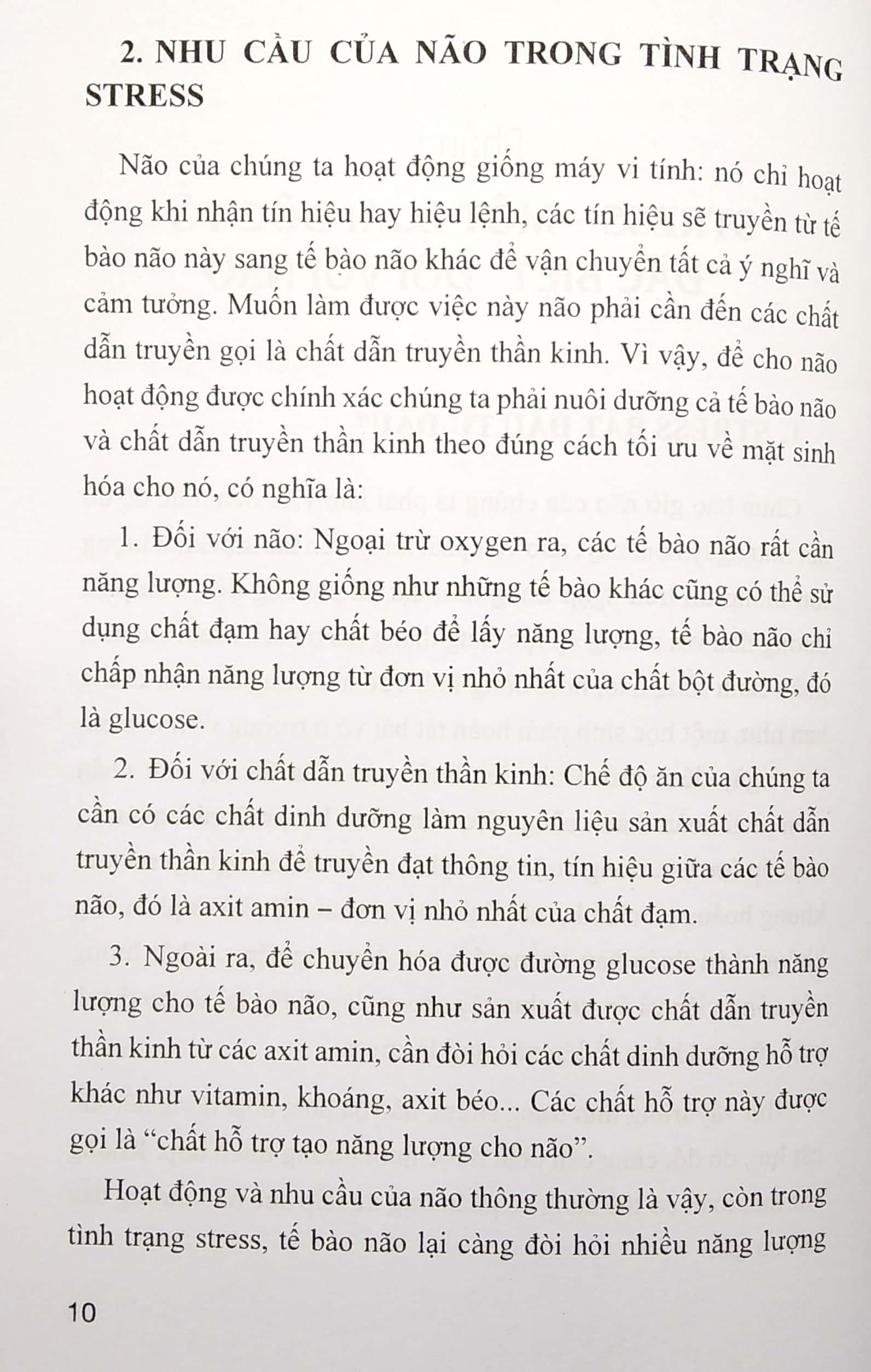 Cuốn sách này sẽ tư vấn cho bạn những cách thức nuôi dưỡng trí não, nhất là trong tình trạng stress, lần lượt theo 6 bước sau đây: Bước 1: Tầm soát mức độ tiếp