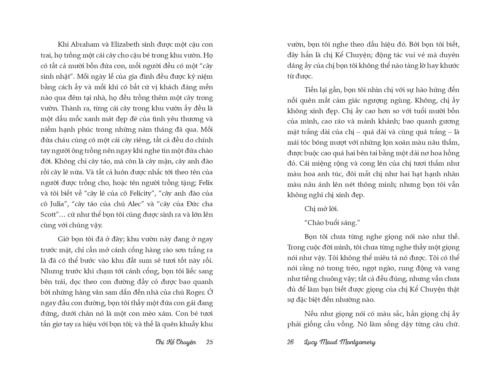 Độc giả Việt Nam hẳn đã quen với hình ảnh cô bé Anne Tóc Đỏ và Emily sống trên đảo Hoàng Tử Edward dưới ngòi bút của nữ nhà văn L. M. Montgomery. Người đọc có thể cho rằng Emily hoặc Anne là một phần tác giả, nhưng nhân vật được tác giả hóa thân nhiều nhất chính là Sara Stanley - Chị Kể Chuyện. Montgomery đã từng thừa nhận rằng Sara Stanley chính là mình.