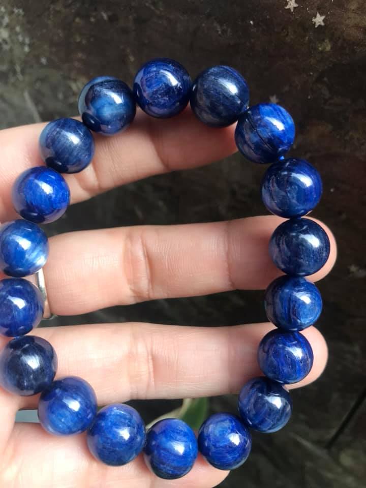 - Vòng tay đá Kyanite không chỉ có màu sắc bắt mắt mà còn có nhiều tác dụng tốt cho sức khỏe,đây là đá Kyanite xanh dương đậm đẹp đeo lên tay tôn lên vẻ đẹp sang trọng,tỏa nguồn năng lượng mới giúp người đeo giải phóng đi những điều phiền muộn trong cuộc sống.