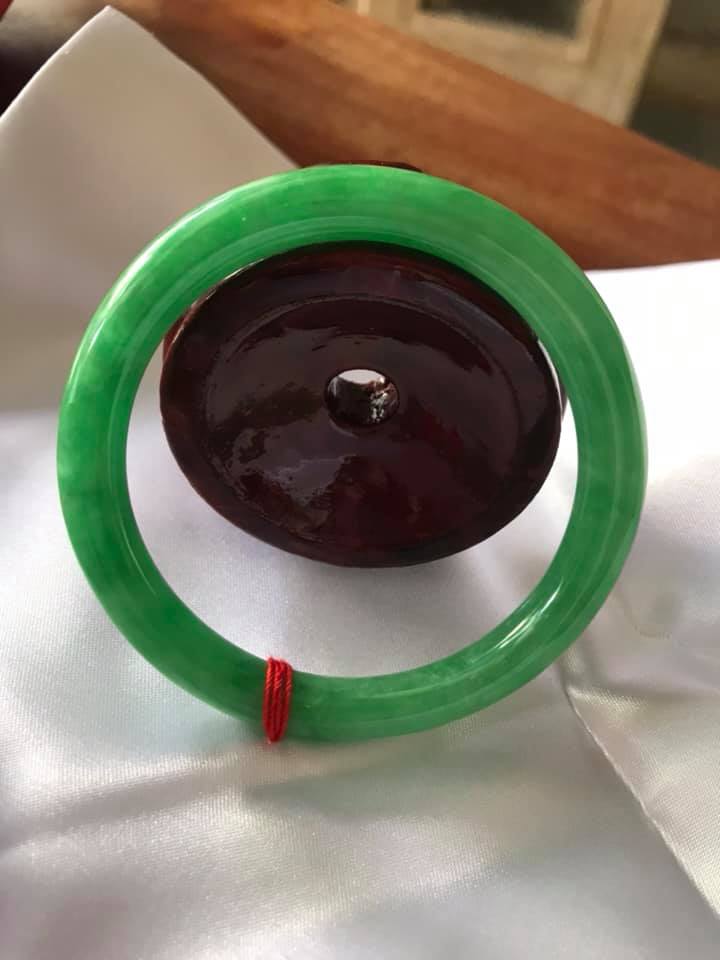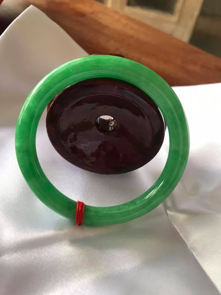 Cặp Vòng Cẩm Thạch tròn 51mm x 6mm Màu xanh ngọc đậm bóng đẹp ạ Nữ mệnh Mộc Hỏa Thủy 50kg - 56kg ạ