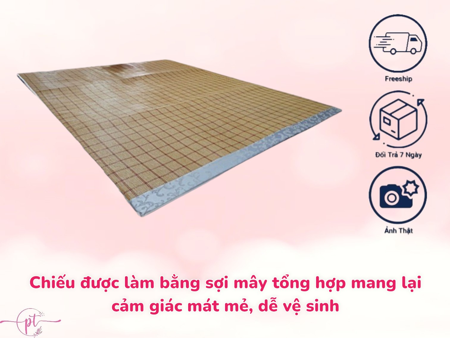 Mua tại TiktokVào mùa hè nắng nóng, sự mềm mại của những sợi vải nệm hoặc drap bỗng trở thành điều gây khó chịu vì chúng ôm sát cơ thể khi nằm, gây ra cảm giác hầm nóng (nếu bạn không có máy lạnh). Đó cũng là lí do mà chiếu điều hòa được sản xuất với tác dụng chính là mang lại sự thông thoáng cho vùng lưng người nằm, và đặc biệt phù hợp với những khách hàng yêu thích cảm giác nằm trên tấm lót mỏng dưới sàn. Cấu tạo sản phẩm gồm 3 lớp: