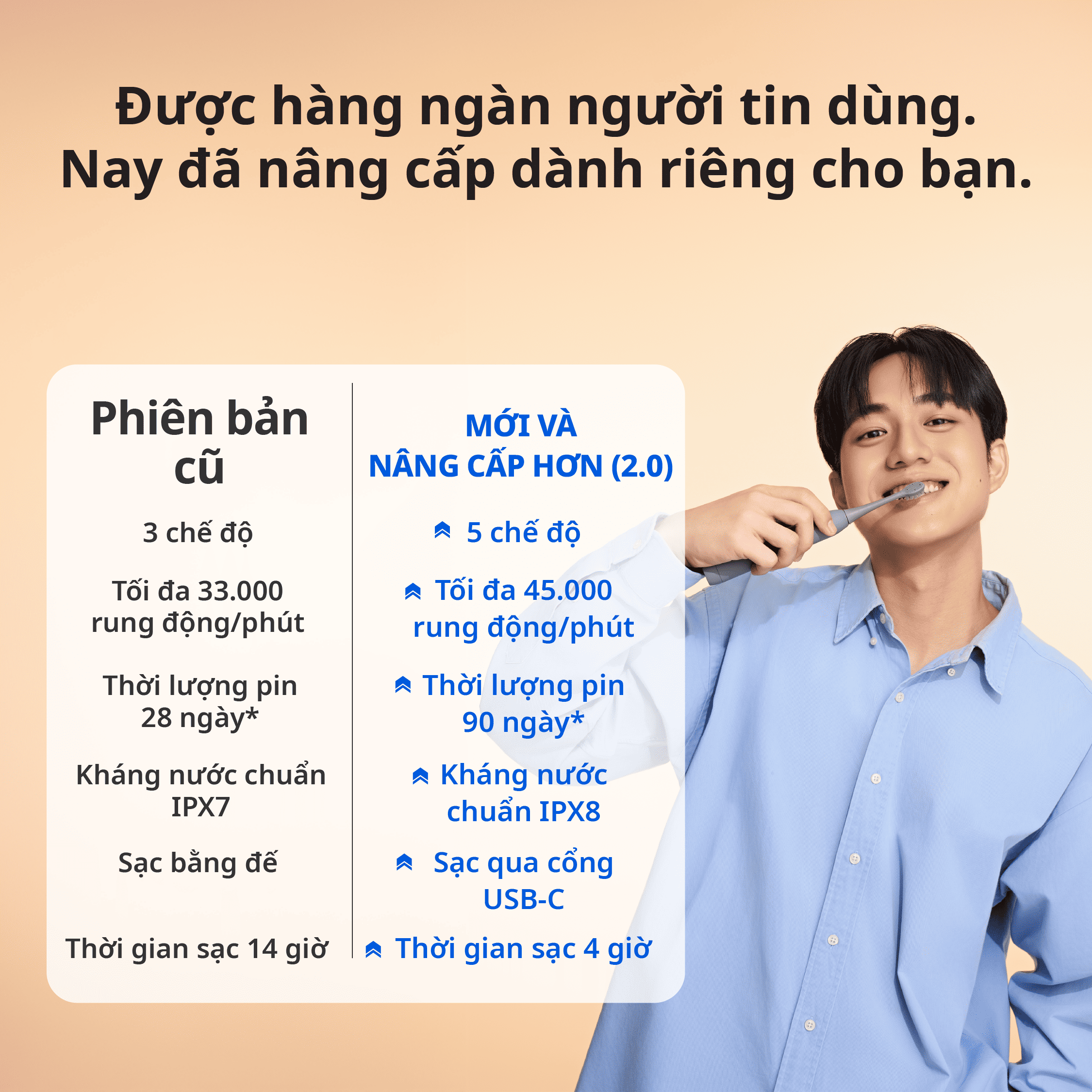 *Khuyến nghị thay đầu bàn chải sau 3 hoặc 6 tháng sử dụng để đảm bảo hiệu quả làm sạch