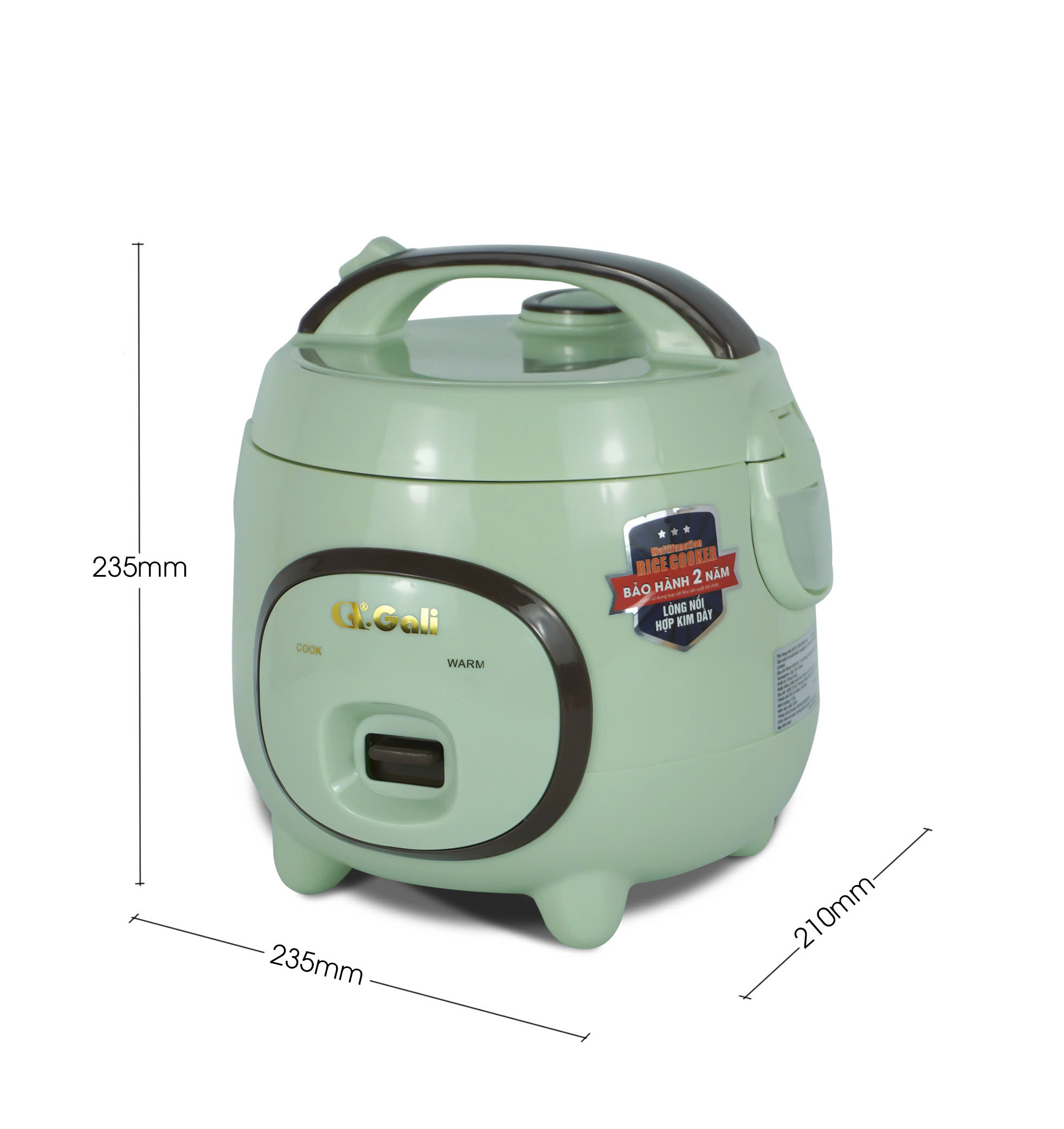 Nồi cơm điện GALI GL-1708 0.8 lít với tông màu xanh lá cây, được thiết kế để nâng tầm trải nghiệm ẩm thực của bạn đồng thời tô điểm thêm sắc màu cho căn bếp.