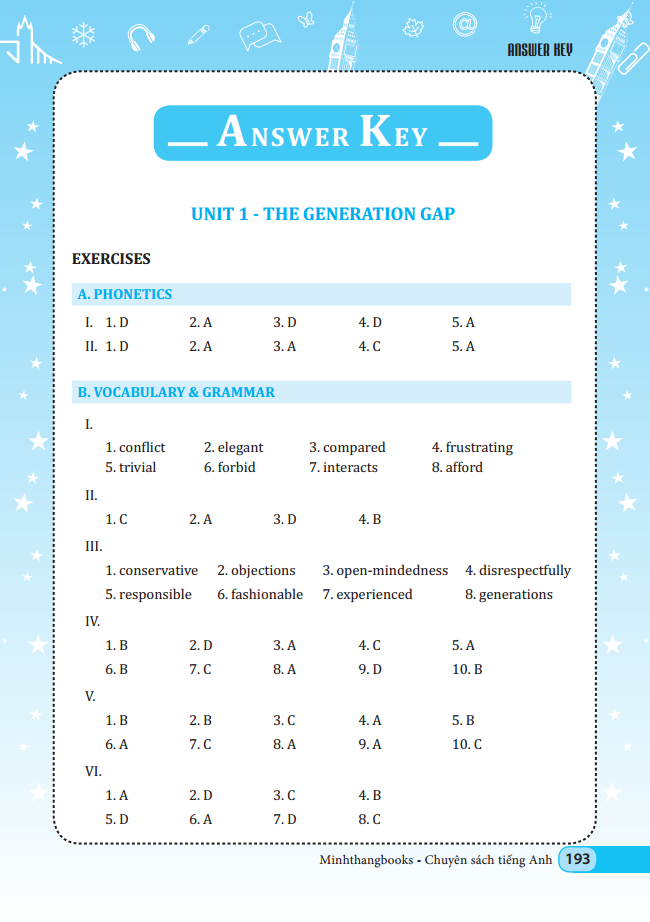 Phần Bài tập được biên soạn theo nội dung tương ứng với từng đơn vị bài học trong sách giáo khoa.