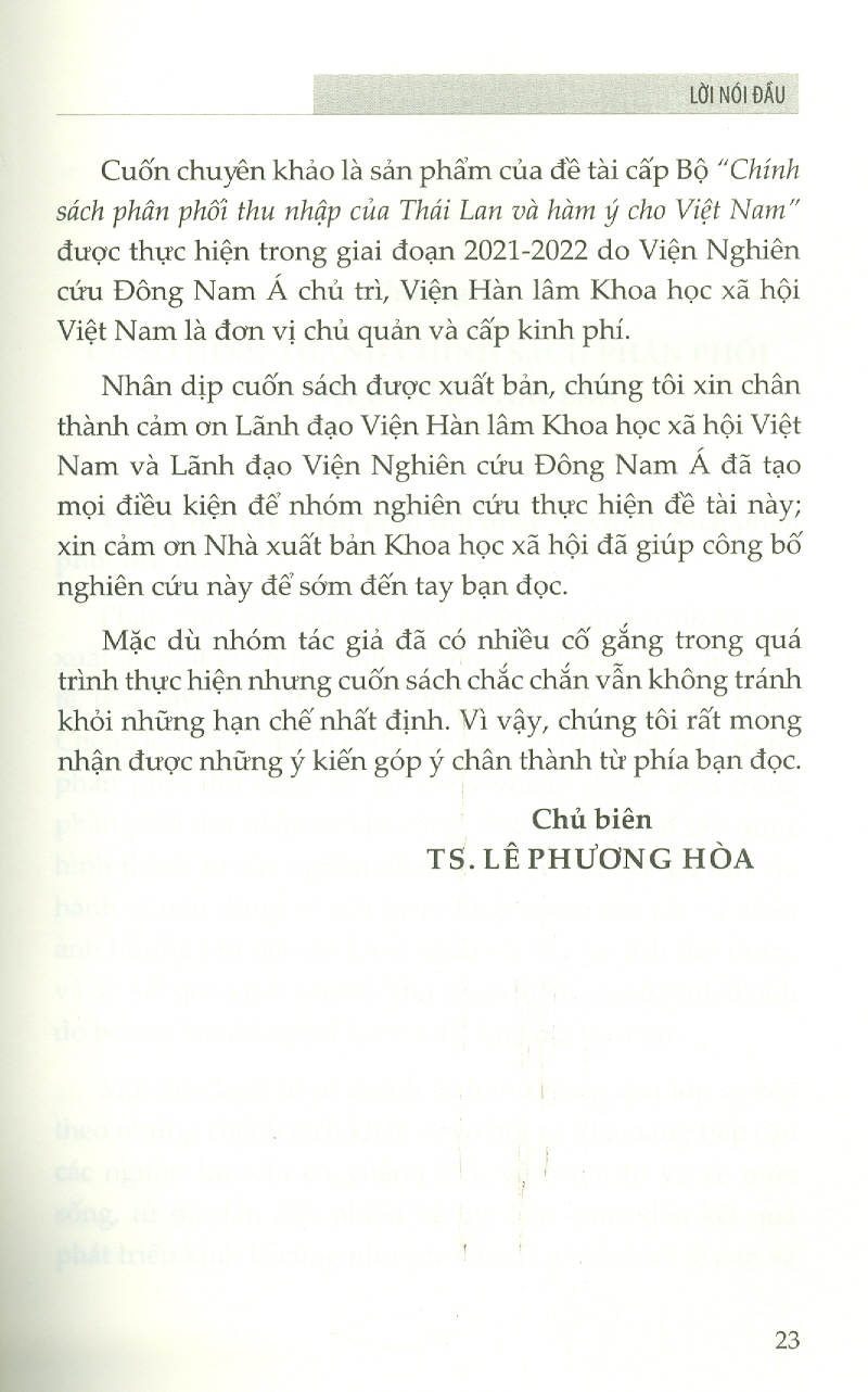 ✨Chính Sách Phân Phối Thu Nhập Của Thái Lan Và Hàm Ý Cho Việt Nam (Sách chuyên khảo)