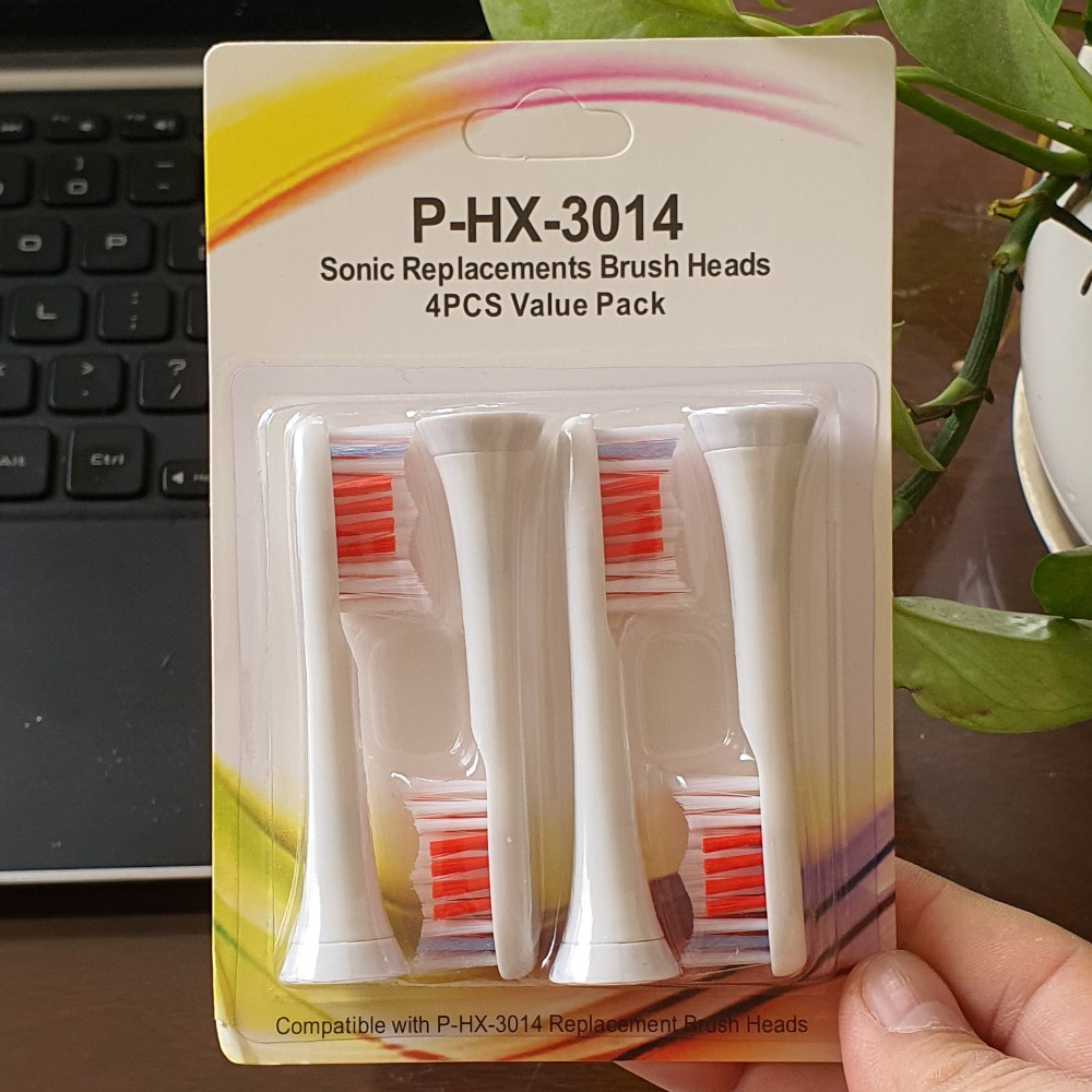 ✨Cho máy Philips Sonicare, Bộ 4 đầu đánh răng điện HX-3014, dòng máy HX3, HX6, HX7, HX8, HX9, R, FlexCare +, FlexCare, HealthyWhite, HydroClean, EasyClean, DiamondClean-Loại bỏ cao răng, cho răng sáng bóng