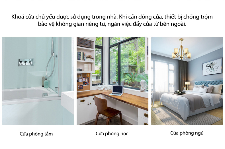- Phù hợp sử dụng cho các cửa trong phòng tắm, phòng ngủ, phòng học, cửa sổ,..