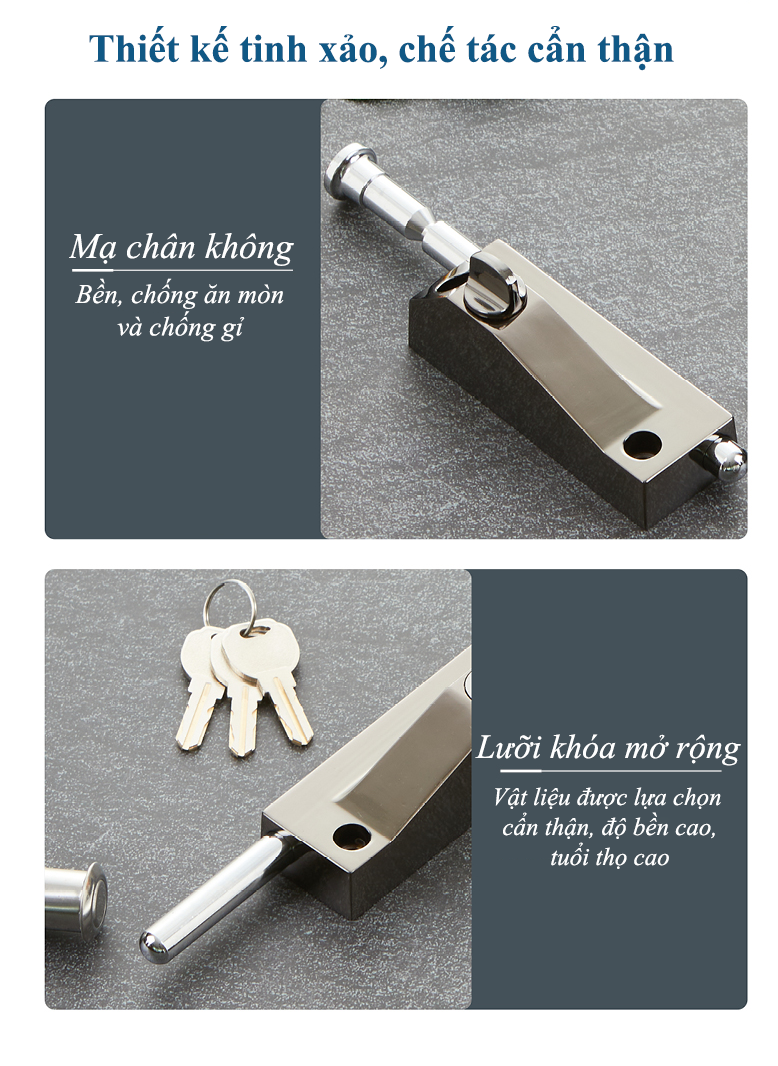 Chốt khoá cửa lò xo trượt, có nút bấm