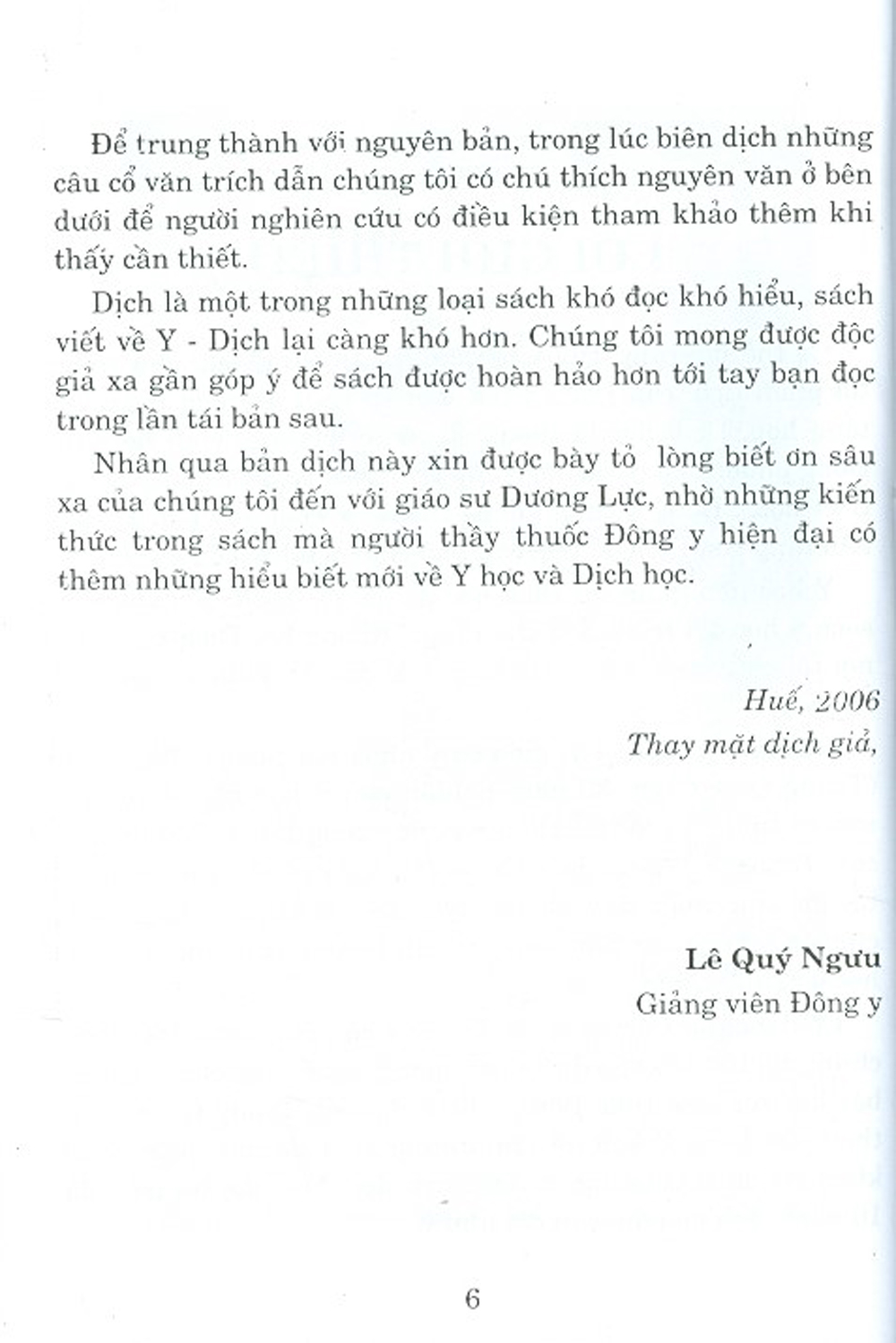 Các sách y học đời trước đều cho rằng:" Không học Dịch thì đừng nói tới chuyện Y học ", " Dịch có lý lẽ của Y, Y được dùng bởi Dịch ".