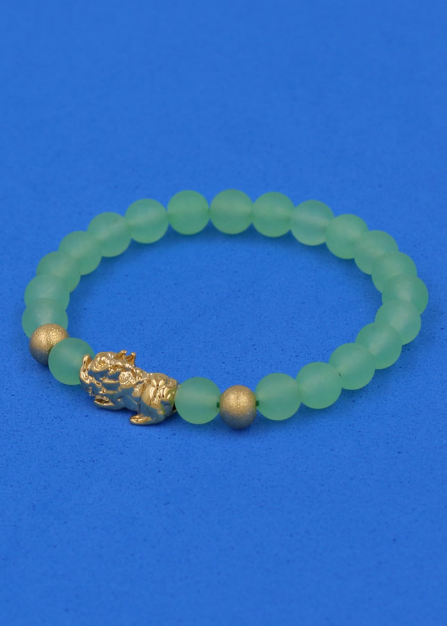 ✨Chuỗi đeo tay Thạch Anh Xanh Lá Mờ 6 ly cẩn Tỳ Hưu inox vàng VTAXLMTHHBV6 - hợp mệnh Hỏa, mệnh Mộc