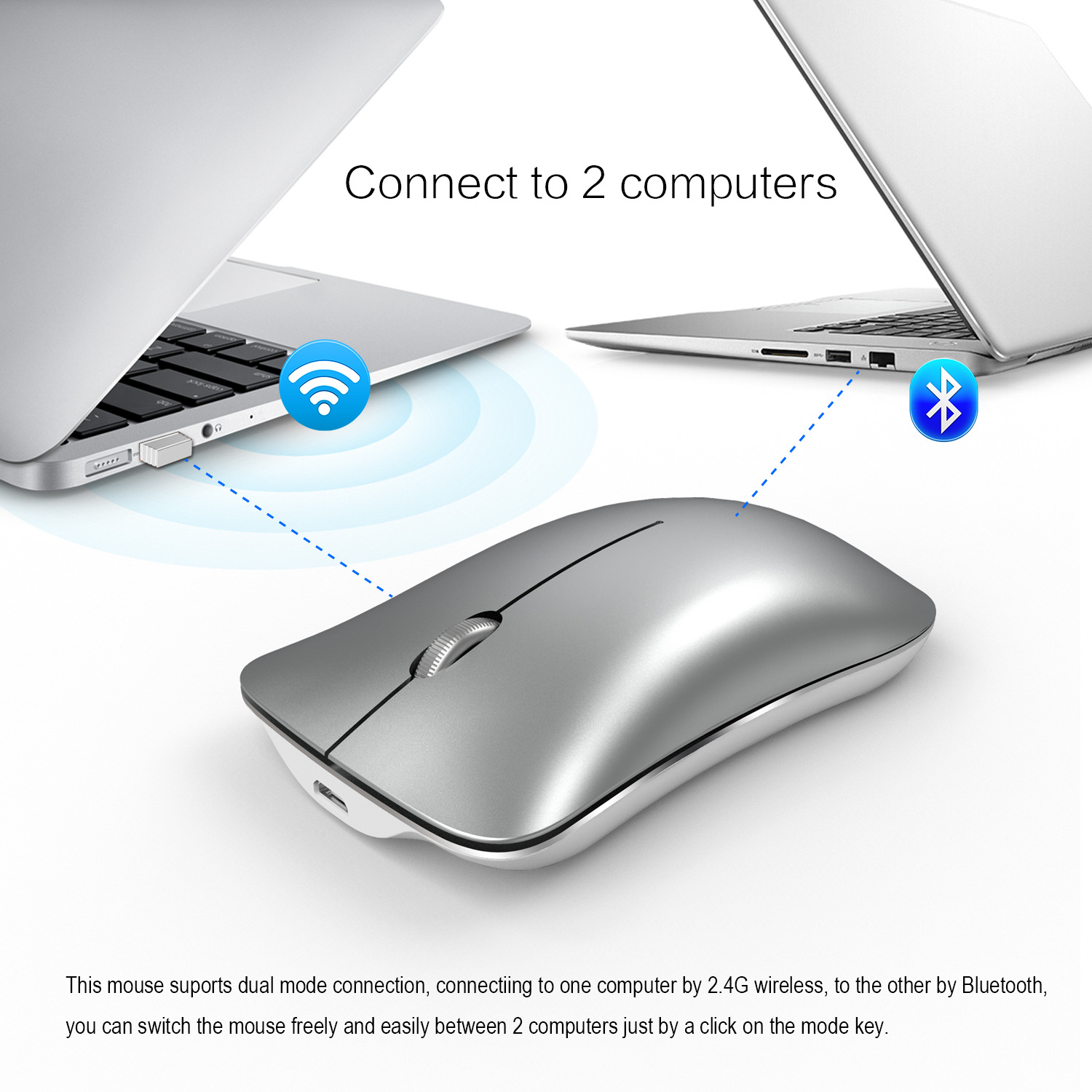Chuột Bluetooth, Chuột Không Dây HXSJ T23, Chuột Không Dây Bluetooth T23 2.4GHz, khoảng cách kết nối 10m cho bạn thoải mái lướt chuột mà không còn nỗi lo vướng víu dây