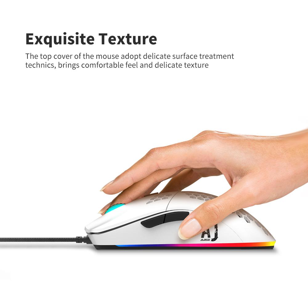 Ajazz AJ100 Wired Mouse 6 Keys A98001600/3200/6000/8200 DPI Custom Colorful Breathing 16-million LED Professional Game Mouse Home Office. Professional Game Chip It Can be applied in many Operating Systems, Compatible with Windows Mac Mute Switch