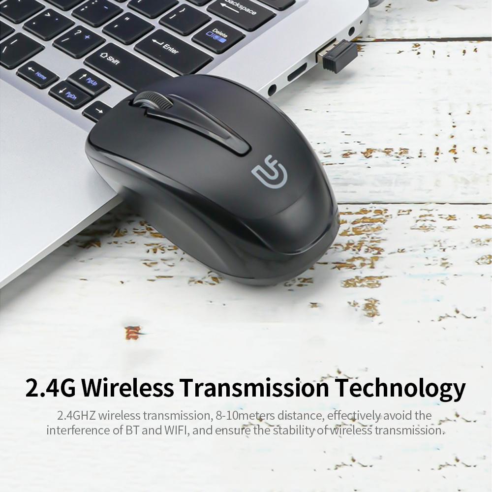 Features: 2.4G Wireless Transmission Technology 2.4GHZ wireless transmission, 8-10meters distance, effectively avoid the interference of BT and WIFI, and ensure the stability of wireless transmission. Low Decibel Keys The mouse has low-decibel buttons with a
