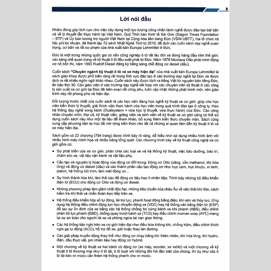 Sách là giáo trình về kỹ thuật ô tô và xe máy hiện đại, từ cơ chế vận hành, cấu tạo máy móc, khả năng ứng dụng đến việc bảo quản, bảo trì, thông tin