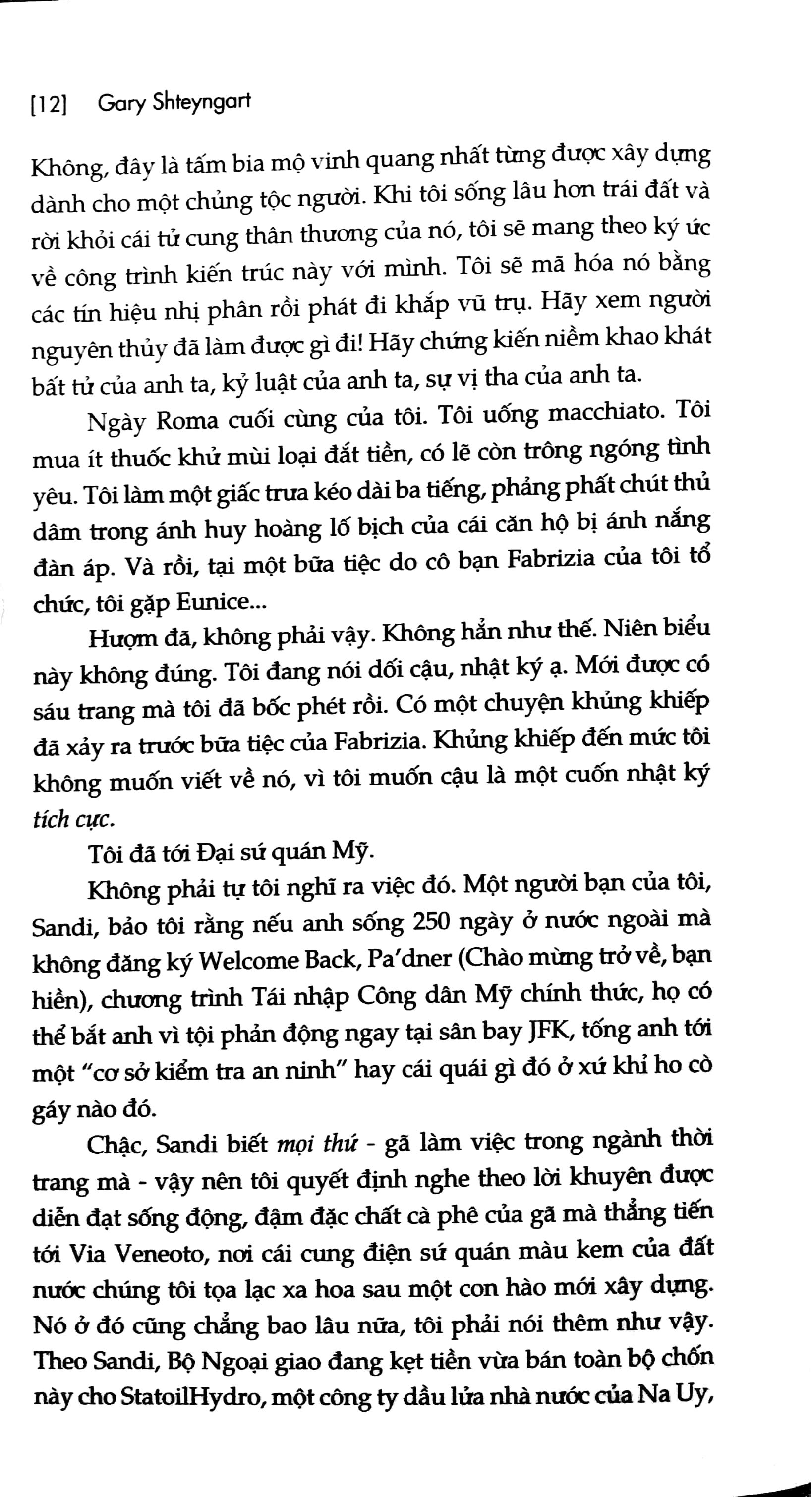 Và bởi thế, sau tất cả những chế giễu, cười cợt, những cường điệu lố bịch đến khó có thể hình dung vốn đã thành phong cách của Gary Shteyngart, bên dưới câu chuyện tình đích thực ấy vẫn là một dòng chảy buồn bã rã rời, âm thầm đặt ra những câu hỏi về nhân tính trong một thế giới hỗn loạn đang trên đà tan nát.