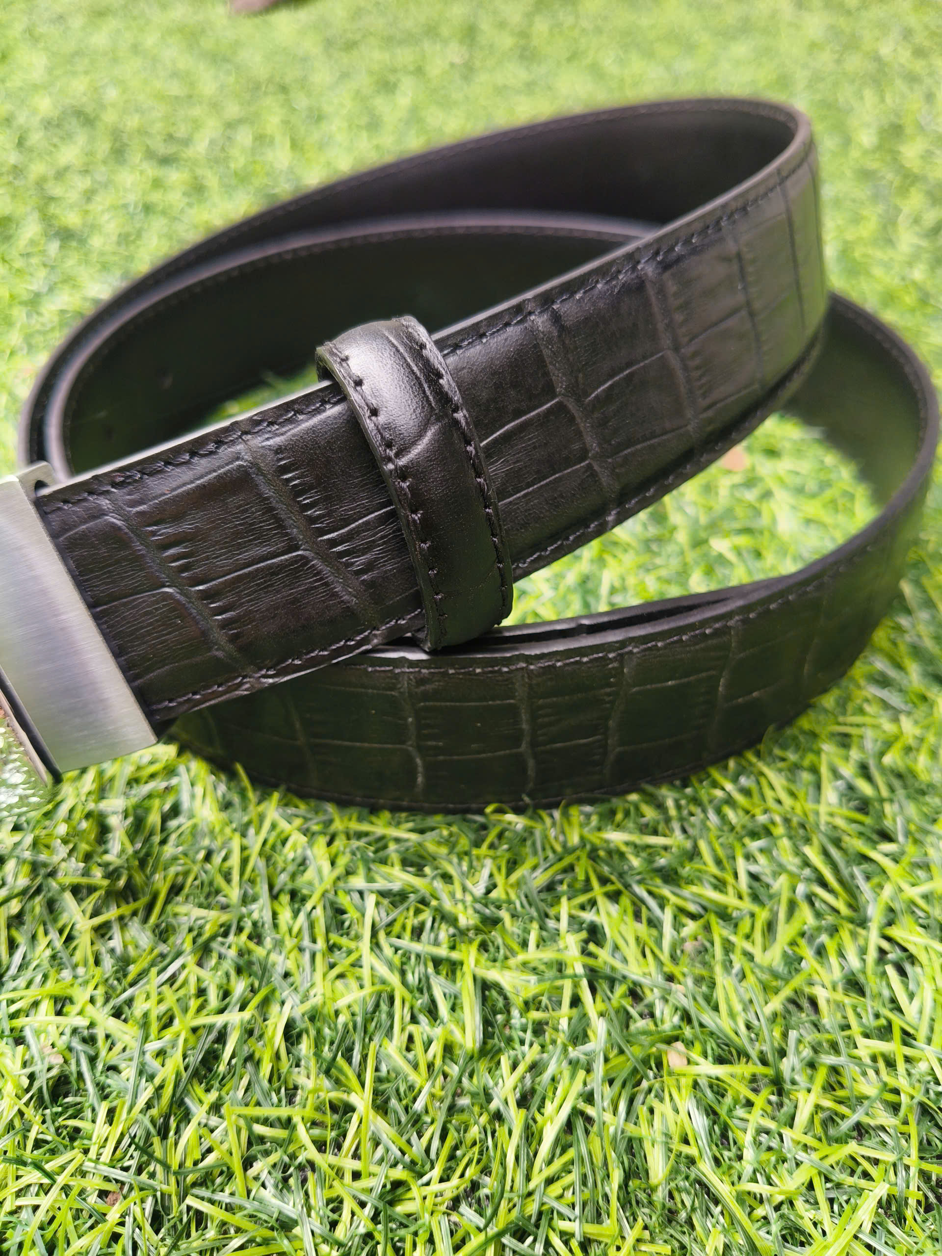 Thắt lưng da bò dập vân cá sấu DHM-149 | Đầu khoá kim kiểu trơn thời trang | Bảo hành 12 tháng