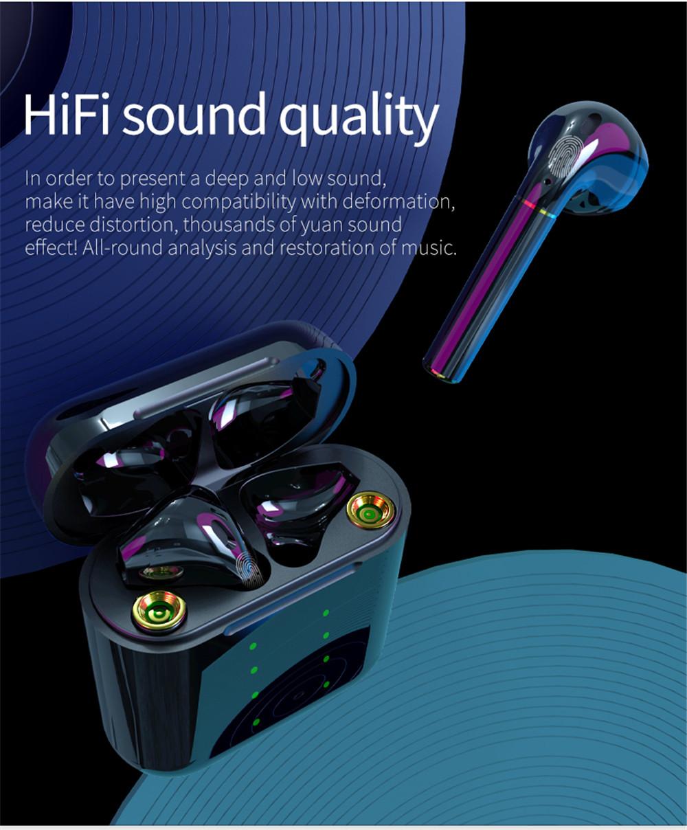 - Bluetooth 5.0, tiêu thụ điện năng thấp Lưu ý: Khi mua tai nghe bluetooth tws quý khách vui lòng đọc hướng dẫn sau: Do vận chuyển lâu ngày nên nguồn điện của tai nghe tws sẽ cạn kiệt, sau khi nhận gói hàng quý khách sẽ không sử dụng được tai nghe, có thể đóng lại. điều đầu tiên cần làm là sạc hộp tai nghe trong 30 phút. Rất quan trọng. Cảm ơn! Bảng kê hàng hóa: 1 Tai nghe Bluetooth (l) 1 Tai nghe Bluetooth (r) 1 hộp sạc 1 Cáp dữ liệu 1 * Hướng dẫn sử dụng