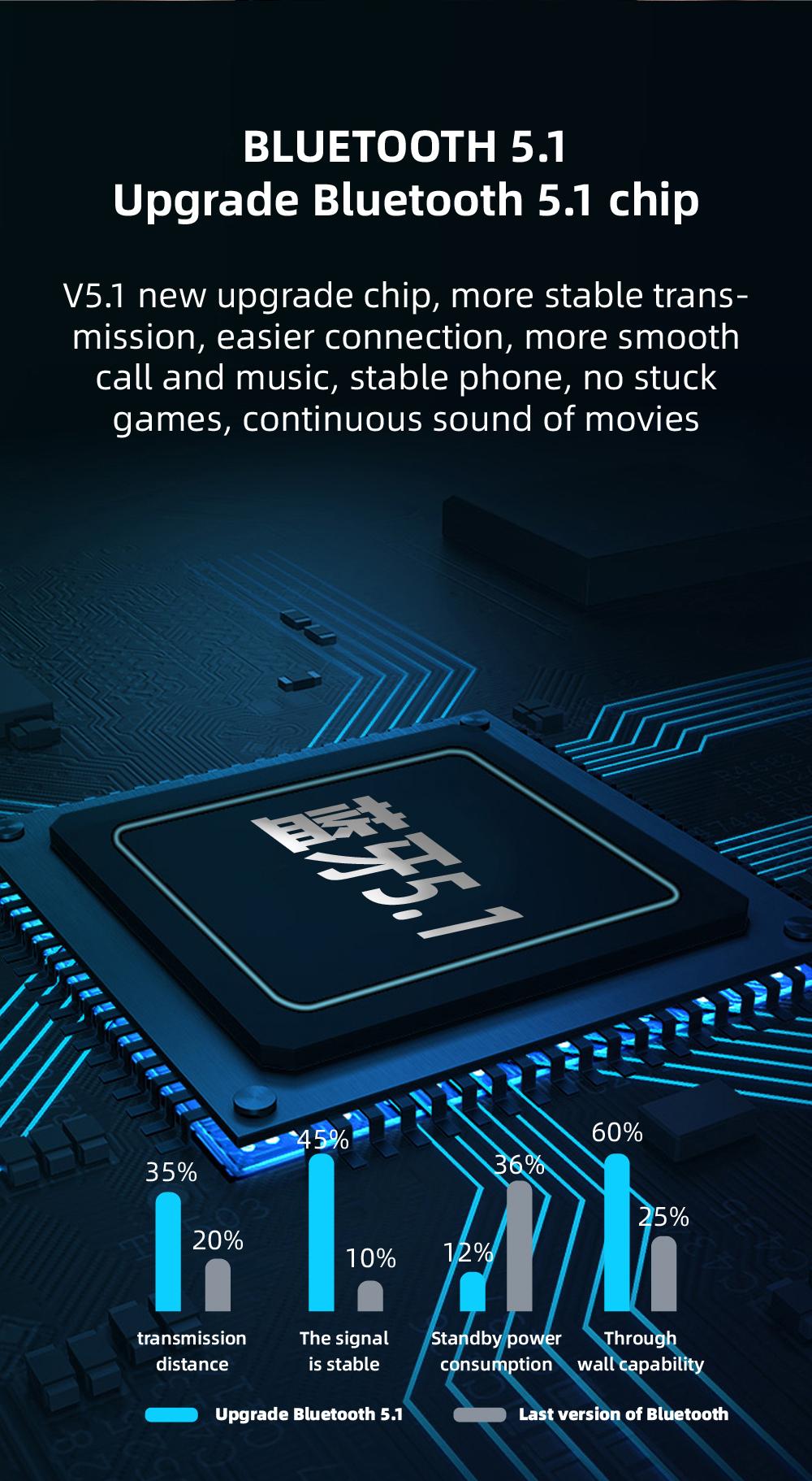 Features: Adopt DSP anti-interference chip and BT5.0 chip, fast and stable transmission, low power consumption. High-quality eight-core 13mm speaker unit, good sound quality, comfortable audio experience. CVC intelligent noise reduction technology can automatically reduct environmental
