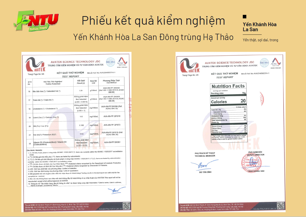 • Chứng nhận bảng Nutrition Facts: Sản phẩm đã được Tổ chức Intertek, Ilac-MRA, Bureau of Accreditation phân tích và cấp chứng nhận, đảm bảo cung cấp đầy đủ và chính xác các thông tin dinh dưỡng cho người tiêu dùng.
