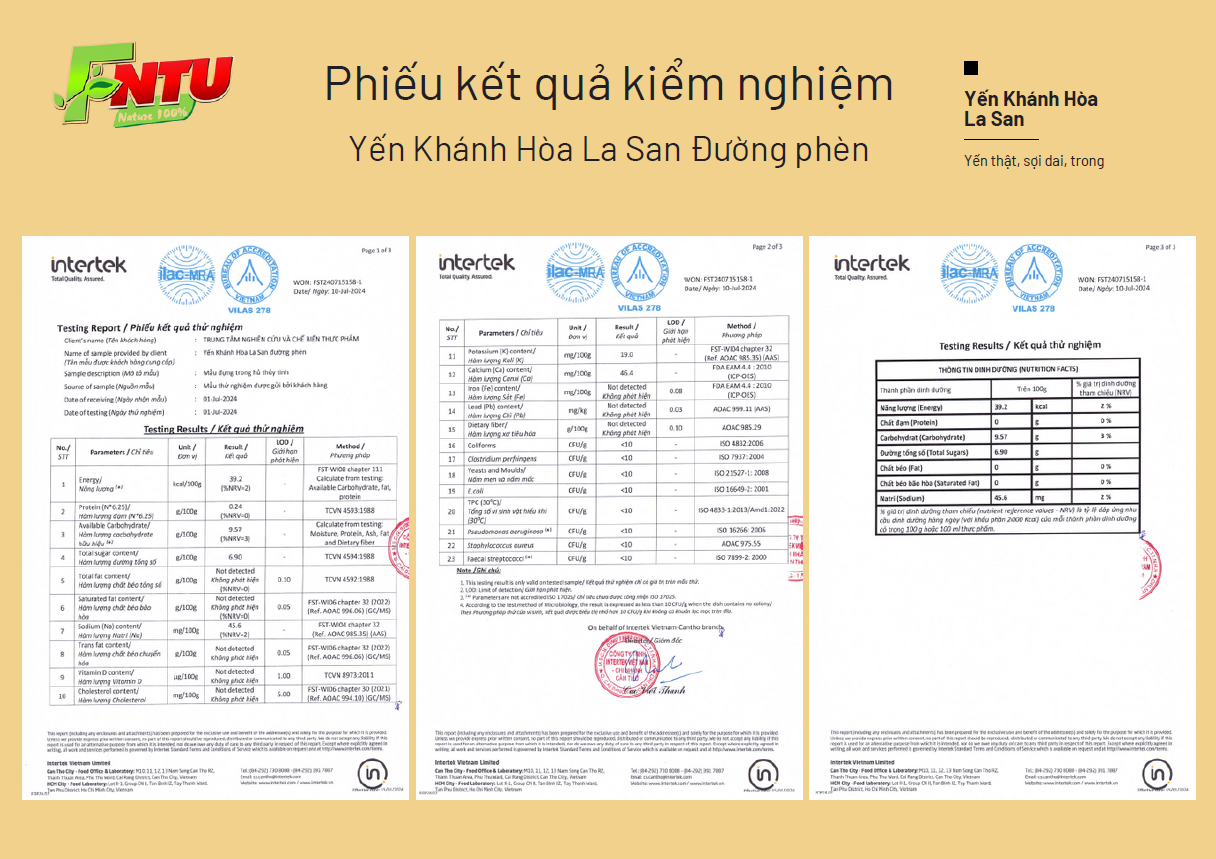 Yến Khánh Hòa La San Đường Phèn: được chế biến theo phương pháp truyền thống, kết hợp với công nghệ hiện đại trên dây chuyền thiết bị tiên tiến từ châu Âu. Điều này không chỉ giữ trọn vẹn hương vị tự nhiên mà còn bảo toàn tối đa các dưỡng chất quý giá có trong yến.