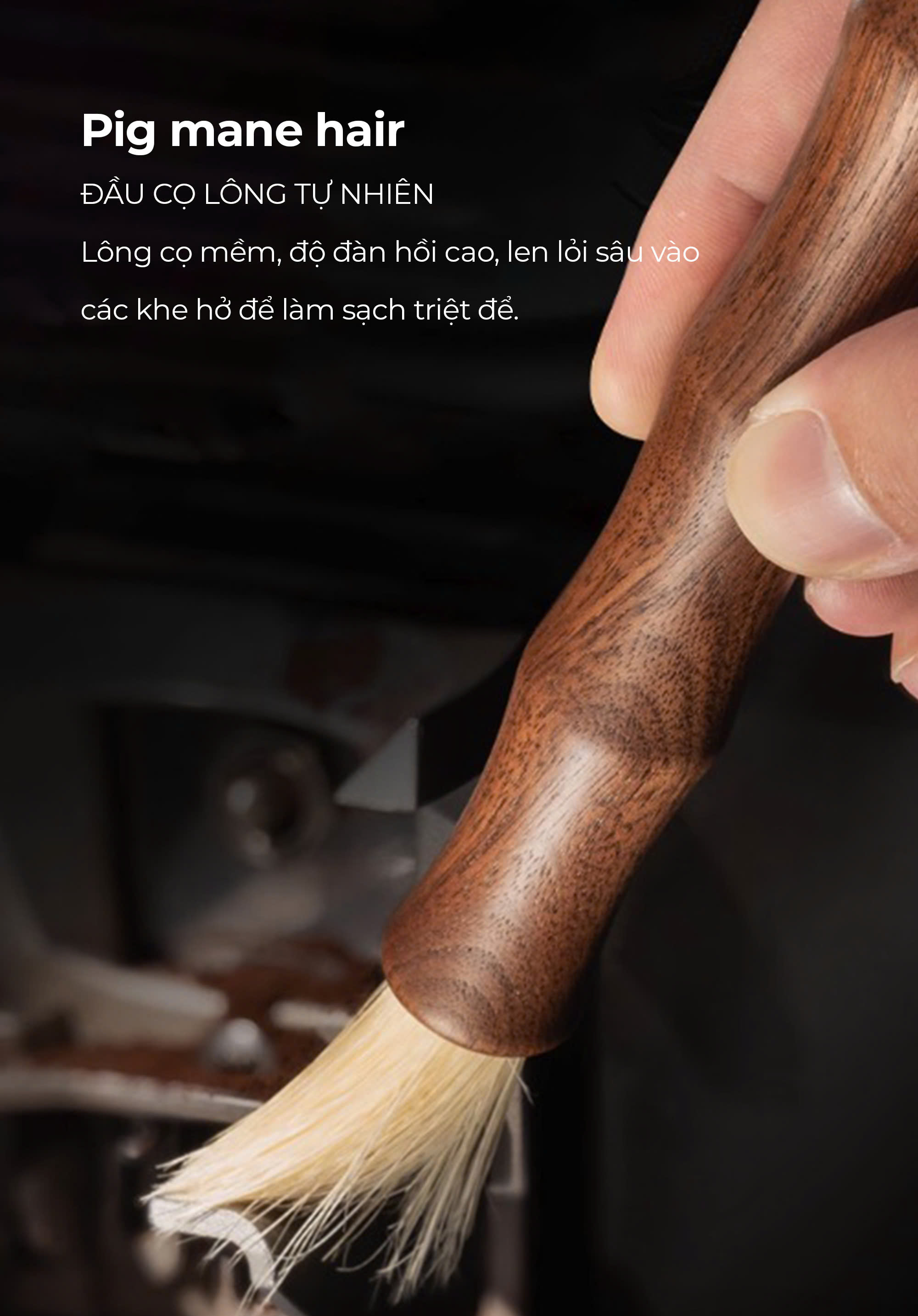 Mua tại TiktokCỌ QUÉT CÀ PHÊ CÁN GỖ ỐC CHÓ FEEPIE Sau mỗi lần pha espresso , cà phê còn sót lại trong portafiler . Nếu trong khả năng cho phép , chúng ta nên rửa portafilter với nước để loại bỏ hoàn toàn bột cà phê cũ còn sót lại . Nhưng nếu trong giờ cao điểm , bạn cần pha liên tục thì cọ vệ sinh máy là một giải pháp cho bạn . Với sợi cọ mềm mại , bạn chỉ cần quét nhẹ portafilter và các bộ phận khác của máy pha cà phê espresso để loại bỏ bột và bụi cà phê một cách nhanh chống và hiệu quả nhất . Sử dụng để quét sạch bột cà phê trong portafilter . Thiết kế đầu cọ tròn dễ dàng sử dụng . Sợi cọ mềm mại quét sạch nhanh chóng .