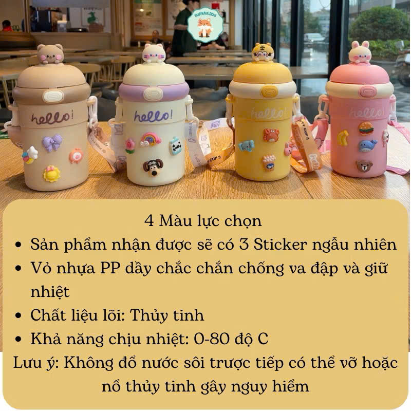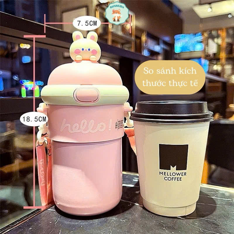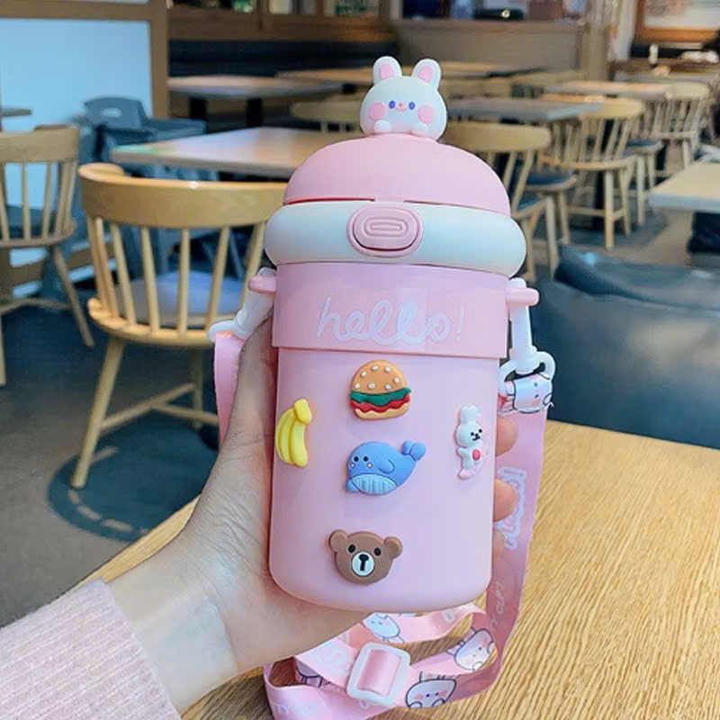 Cốc Giữ Nhiệt Trẻ Em 510ml Có Ống Hút – Cốc Đeo Chéo Hoạt Hình Dễ Thương Cho Bé Gái, Bình Nước Uống Tiện Lợi