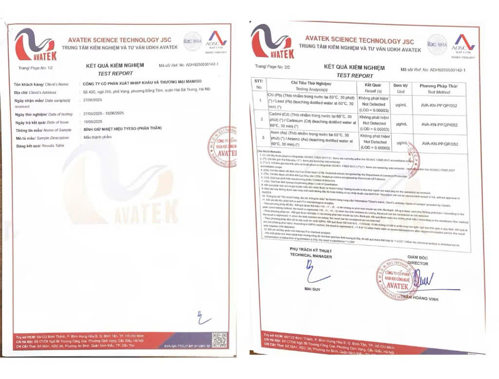 Chất liệu cao cấp: Thân bình bằng thép không gỉ 304 không thôi nhiễm, không mùi, bền bỉ theo thời gian, sản phẩm đã được mang đi kiểm nghiệm an toàn tuyệt đối, nắp
