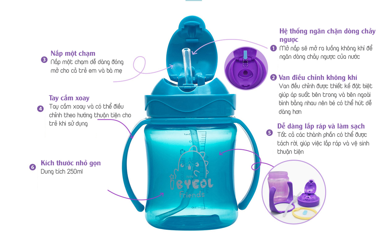 Mua tại TiktokCốc ống hút I-byeol Friends Flip Color One Touch (Chính hãng Hàn Quốc) Dòng bình sữa/ cốc ống hút I-byeol Friends từ Hàn Quốc với thiết kế đơn giản, tinh tế, dáng cổ rộng đem đến sự thuận tiện và thoải mái cho cả mẹ và bé trong việc sử dụng và vệ sinh. Đặc điểm nổi bật của Cốc ống hút I-byeol Friends: