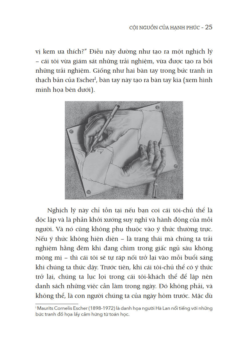 Vấn đề ngăn trở chúng ta đạt được hạnh phúc là cách tâm trí con người được tiến hóa để thích nghi với thế giới từ một góc nhìn vị kỷ và tập trung vào những mối đe dọa sống còn trong quá khứ. Khởi đầu là những đứa trẻ duy kỷ phụ thuộc vào người khác về mặt xã hội, chúng ta lớn lên thành những người lớn bớt vị kỷ hơn nhưng không cảm thấy hạnh phúc bởi vì bộ não của chúng ta được thiết kế để tập trung vào những thông tin và sự so sánh sai lệch khi đánh giá cuộc đời mình. Điều chúng ta cần làm là đứng ngoài tâm trí của chính mình bằng cách kết nối với những người khác và thế giới xung quanh mình thông qua những hoạt động khiến chúng ta hạnh phúc hơn .