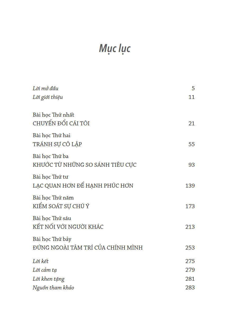 1. Xoay Tư Duy Chuyển Cuộc Đời Thay đổi thói quen để vận dụng sức mạnh tỉnh thức 56 Cách thực hành giúp bộ não được “tỉnh thức” Cuộc đời là kết quả của tất